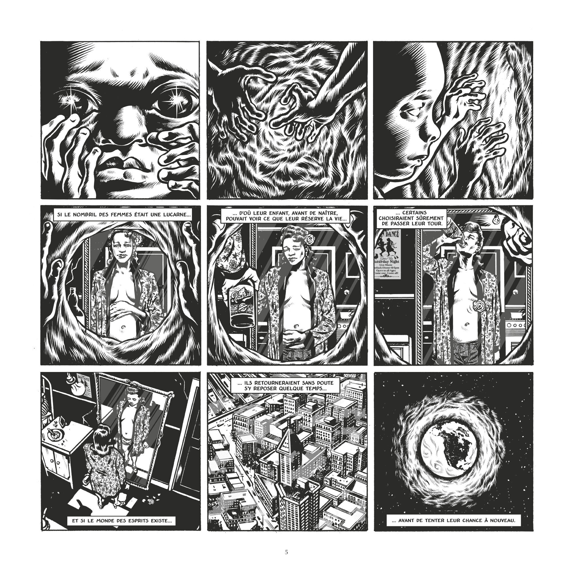 Je regarde ce qui m’attend par la lucarne de son nombril [...]