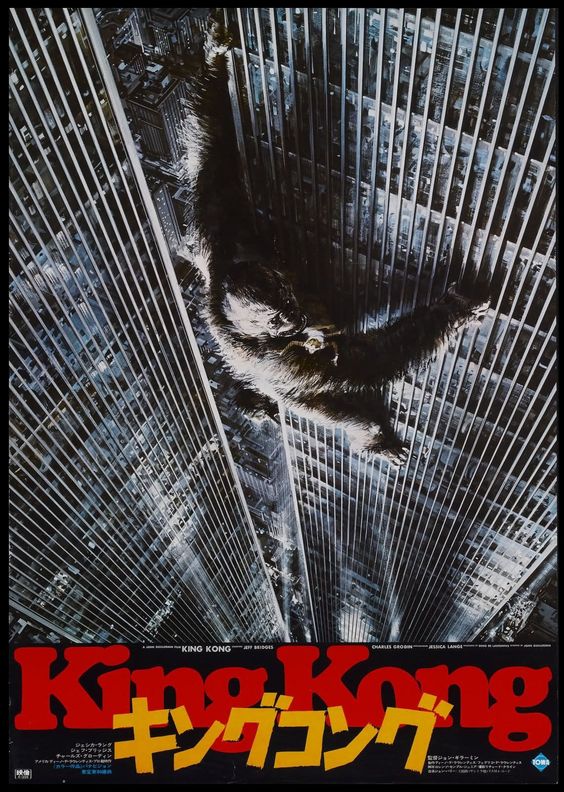 Rappel au passage de quelques films Kong, pour voir l’évolution du marketing au fil des décennies. Pas d’exhaustivité, les reprises de la version originale de 1933, les nanars bis, en particulier japonais, les visuels étrangers des remakes et les teasers des versions contemporaines, rendent l’exercice quasi impossible à faire.