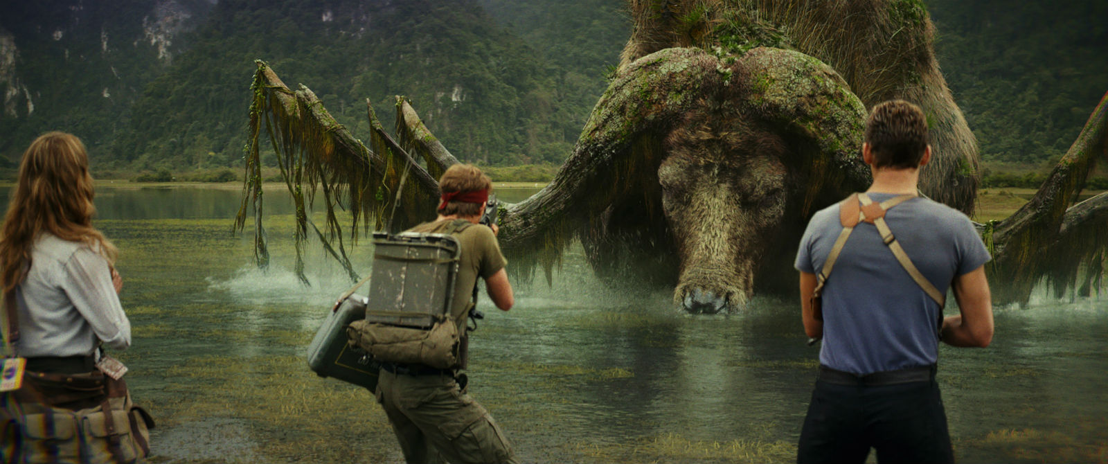 Critique : Prélude à King Kong, quantième avatar de la créature, cette production Warner et Legendary Pictures à 190M$ ne vole pas son public, même si elle n’a pas la consistance du film de Peter Jackson. Le blockbuster propose une relecture sommaire de la guerre du Vietnam, comme si le cinéma américain n’en finissait de revisiter ce traumatisme, et multiplie les clins d’œil à Apocalypse Now, dont certains scènes sont purement et simplement parodiées (on pense à la difficile progression des hélicoptères à l’assaut d’un gigantesque nuage zébré d’éclairs). Mais la comparaison s’arrête là, même si, au détour de quelques documents d’archives en guise de préliminaires (des extraits de discours tenus par différents présidents américains), le film revendique un ancrage historique. Celui-ci paraît tout de même artificiel par rapport à ce qui suit : partis à l’assaut d’une mystérieuse île du Crâne, obsédés par l’idée de devancer les Russes, scientifiques et militaires découvrent une sorte de lieu originel, qui se défend contre l’intrusion, via ses bestioles aux dimensions démesurées - Kong en tête -.