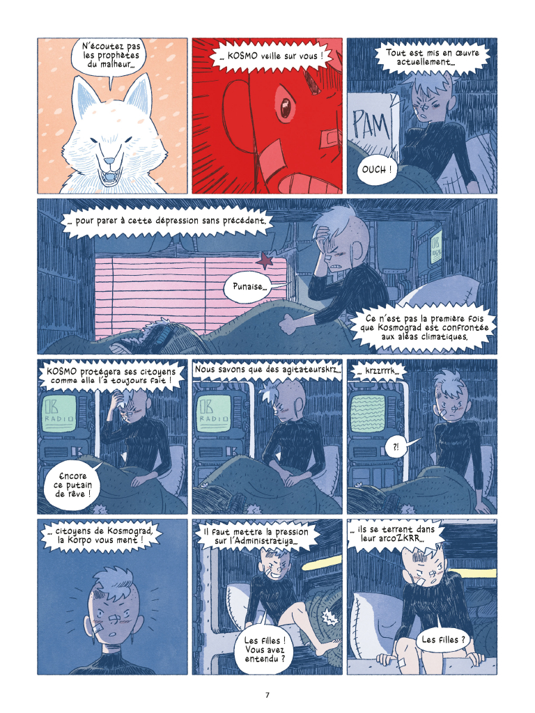 Résumé : Dans la cité refuge de Kosmograd, les survivants attendent la fin du chantier de l’ascenseur orbital pour fuir une planète désolée, mais une tempête menace. Pour les habitants, l’hypocrisie et l’exploitation de la corporation Kosmo doit cesser...
