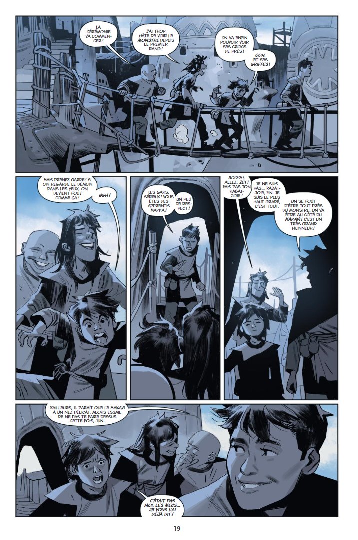 Pour ce qui est des envies graphiques, De Felici s’en donne également à cœur joie. Le triomphe du noir et blanc annonçait une société sans passion ni sentiment, mais ce constat ne s’arrête pas là. La couleur a une réelle incidence dans la vie des habitants de la Cité blanche, car cette neutralité leur garantit la vie sauve. En cela, une goutte de sang est synonyme de mort certaine, et elle n’est pas seulement symbolique. Très vite, le symbolisme s’efface, puisque le grand prêtre n’assoie son pouvoir que par la monochromie mais n’a pas de diktat farouche sur la couleur et ce qu’elle suggère. Lorsque l’héroïne se retrouve dans la Nature, celle-ci n’est d’ailleurs ni accueillante, ni hospitalière. Pour preuve, lorsque celle-ci est secourue et apprend à maîtriser la nature, le danger rôde toujours sous diverses formes. Ce monde n’est donc pas une allégorie si dichotomique que le résumé ou la couverture pouvaient laisse penser, il s’inscrit dans un ensemble plus complexe sous certains aspects (légendes revigorées, système de castes...) ou même plus simple (la couleur domestiquée, les codes de la survie...).