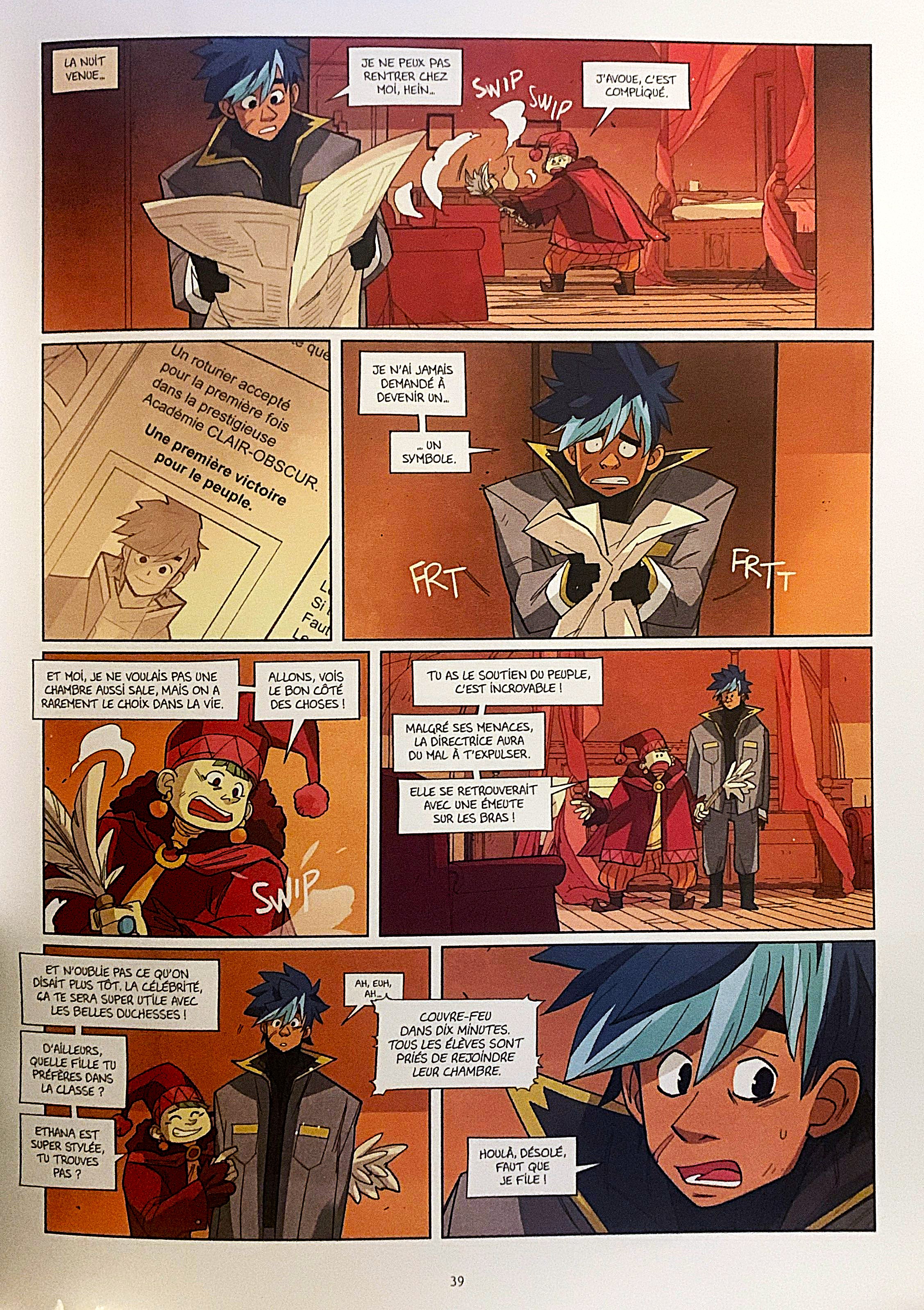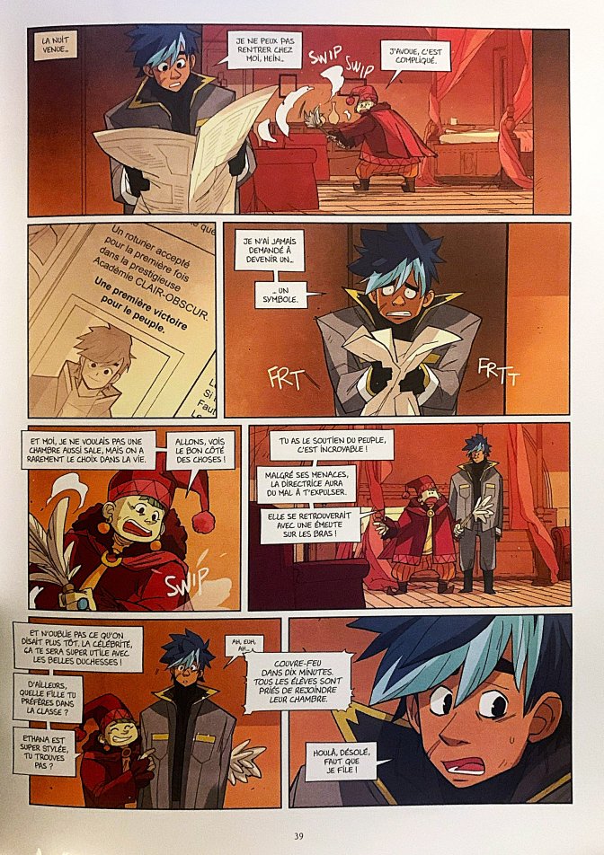 Entre les cours de magie et le trait dynamique de Grelin nous n’avons pas le temps de nous ennuyer, d’autant que les jeux de dupes et l’influence des familles, sans oublier les espoirs du peuple, se font sentir jusqu’au sein de l’Académie ! Malgré une petite réserve quant à la rapidité sur la résolution de certains rebondissements, nous avons pris beaucoup de plaisir à découvrir cet univers, cette histoire mais surtout ses personnages qui n’ont pas fini