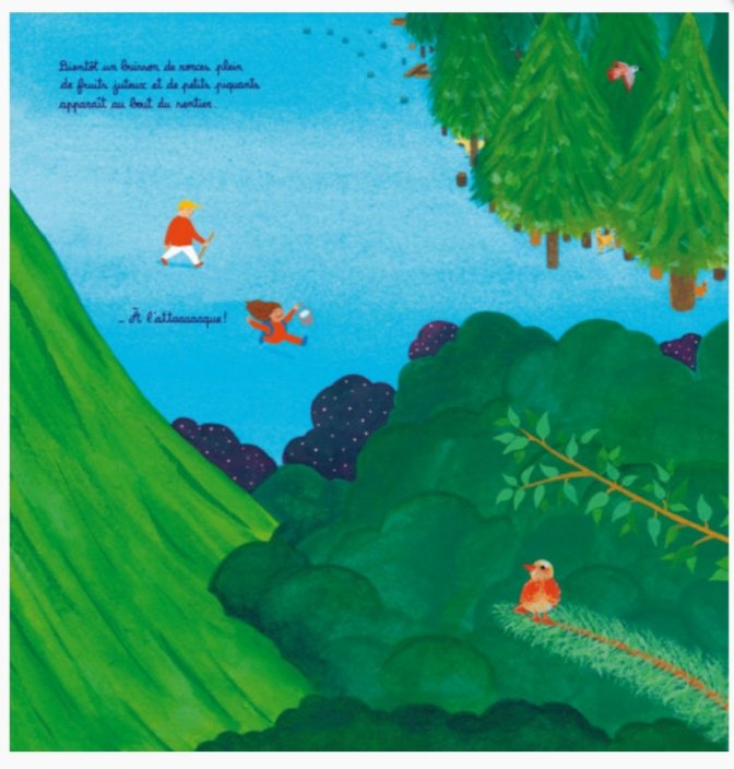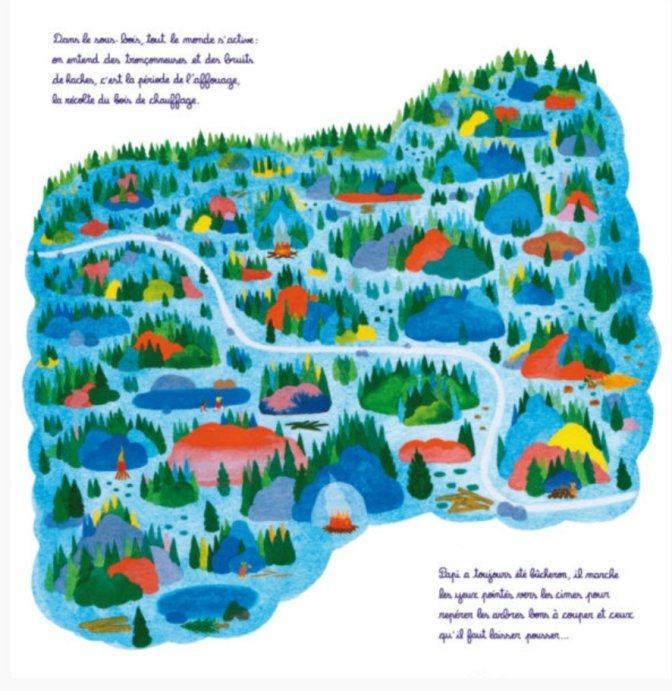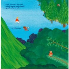 A quel âge faut-il s’intéresser aux arbres, aux forêts, à la vie ? Dans cet album jeunesse au format inhabituel, Charline Collette le fait d’une manière si douce qu’on se dit qu’on peut le conter aussi bien à un poupon qu’à un centenaire. De fait, la leçon d’écologie.,ou plutôt le jeu de questions et réponses entre une petite fille et ses sages grands parents, est transmise sans grandes envolées, sans chiffres alarmants ou perspectives sombres. Seul le respect, la douceur et la vie foisonnent dans cette quarantaine de pages, puisque ce sont des plans larges, sans bulles, qui viennent les uns à la suite des autres. Pas de péripéties non plus, puisqu’il ne s’agit pas d’aventure, l’héroïne Anna aura bien son gâteau d’anniversaire à la fin de ce beau pamphlet qui n’en n’est pas vraiment un.