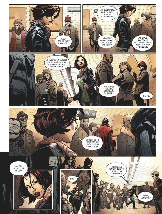 Ce premier tome de L’Agent nous initie à l’univers à la fois obscur et familier de la sorcellerie, que le scénariste Mathieu Gabella mêle à celui des agents secrets. Ce mélange fonctionne parfaitement, et les premières pages captent immédiatement l’intérêt du lecteur. Le détournement de certaines fonctions – comme le médecin légiste qui s’avère en réalité un haruspice – et le jeu sur les traditions populaires qui nous sont familières font le sel de ce volume. En nous entraînant tantôt dans une forêt obscure, tantôt dans les catacombes de Paris, le scénario joue habilement sur les lois du genre. Au-delà de nous plonger dans une ambiance plutôt originale, ce premier tome est riche en rebondissements. Le duo, assez classique, formé par Rhym et l’agent secret Sébastien s’avère en fin de compte efficace.
