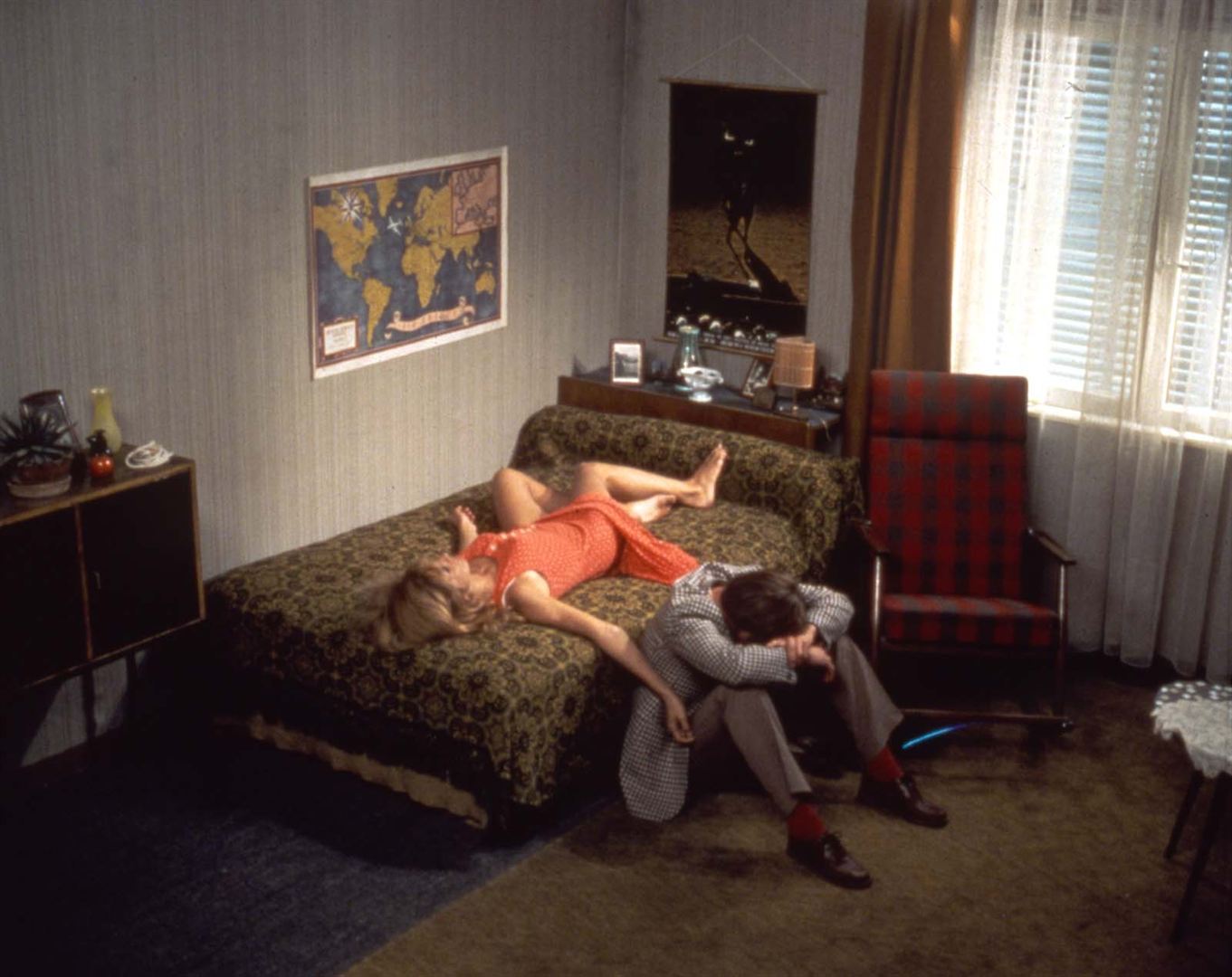 Pas d’émotion non plus, les personnages se dérangent plus qu’ils ne se fréquentent. Ainsi de la fillette, sans cesse renvoyée (« elle ne compte pas », dit sa mère) ou des reproches adressés à Joseph par Hertha. Rien de tendre n’advient, les paroles sont souvent peu amènes. C’est que Wenders filme un délitement, une dilution de l’homme moderne dans un univers incompréhensible et injustifiable. D’où aussi ces plans de violence gratuite soudaine comme le sont les décisions de Joseph : tout est au présent, sans lien ni causalité. La vie est ainsi, semblent dire les scénaristes, une errance solitaire et répétitive : la récurrence des juke-box, les journaux ou de la radio sont là pour évoquer le piétinement d’un récit qui commence et se conclut par du football, en un cycle vain.