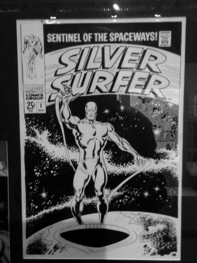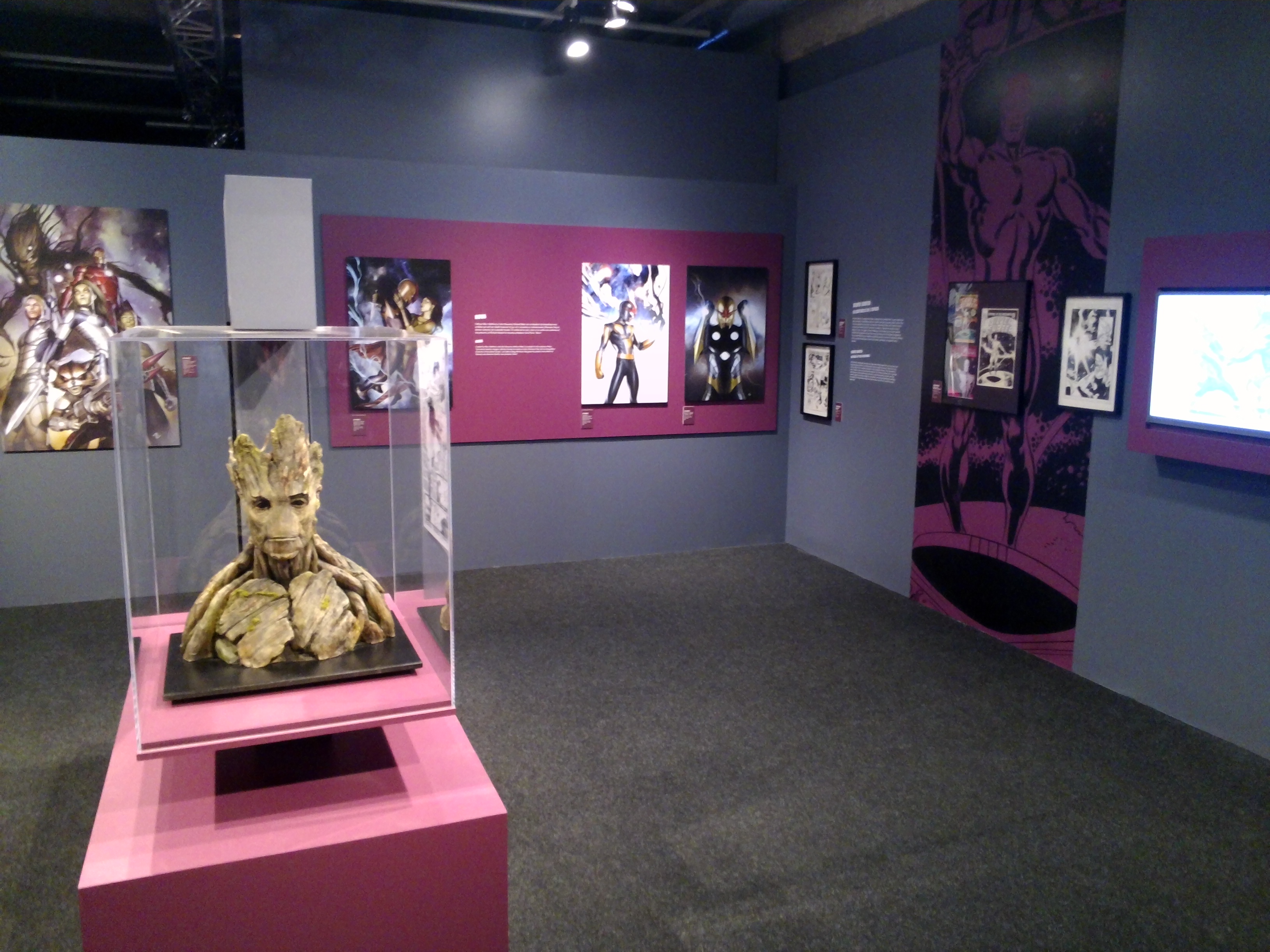 L’exposition suit une organisation thématique. Les premières salles sont consacrées aux premiers grands super-héros et aux équipes de super-héros (les Avengers et Les 4 Fantastiques). Puis viennent les X Men, les héros urbains comme Spiderman et Daredevil, une salle consacrée à l’adaptation au cinéma de l’univers Marvel et enfin une salle sur les héros dits galactiques comme les Gardiens de la Galaxie et le Surfer d’argent. L’arrangement des pièces exposées est très bien pensé, il alterne efficacement entre des séries de planches originales et de concept art colorisés.