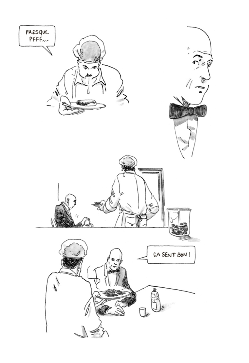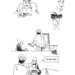 Cette vibration et cette force, le dessin les a condensées, réduites, presque assimilées à quelques traits, répartis sur presque cinq cents feuilles très blanches. Autant de visages qui paraissent à peine griffés par un pinceau, autant de décors qui peuvent apparaître familiers, de l’hôtel miteux au kebab de quartier, qui n’ont pas un détail de trop, pas une clarté malgré tout le blanc qui les entoure. Là encore, le roman graphique excelle dans cette volonté de montrer une réalité si fragmentée, si reconstituée qu’elle en devient vérité. Ce pouvoir du dessin si minime est donc une force pure, dont l’épicentre se trouve au milieu de chaque planche, sans avoir besoin de marges, sans aller jusqu’au bord.