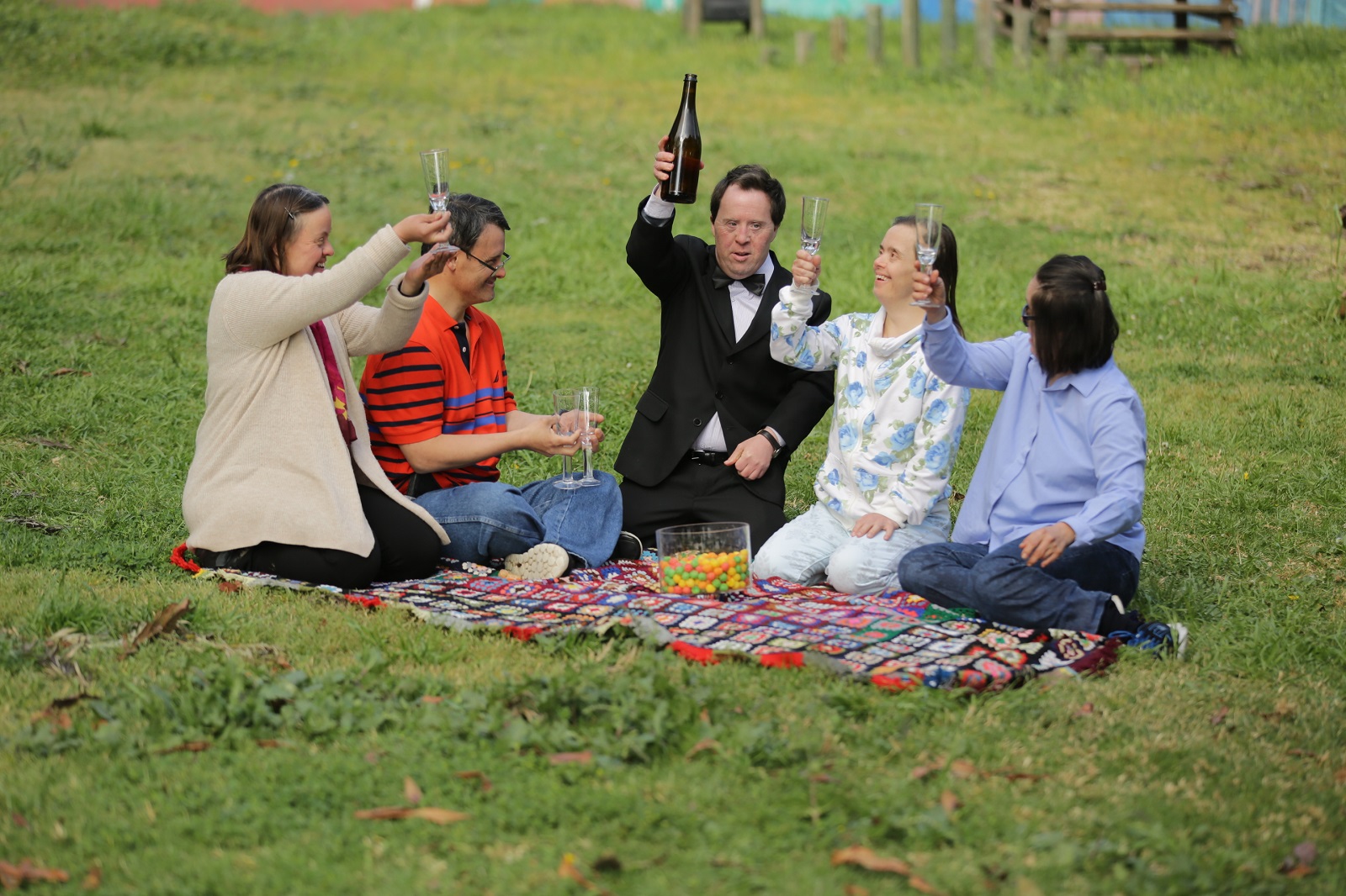 La force de ce film est de s’en tenir à ce point de vue et de l’illustrer par une histoire édifiante : celle d’Andrés et d’Anita. Ils sont amoureux, veulent se marier et vivre ensemble. C’est simple et pourtant rien ne le sera. Parce que les injonctions institutionnelles à la norme sont partout et qu’elles se cristallisent à travers des situations éloquentes : Andrés commande un verre, le serveur lui demande s’il a droit à de l’alcool ; le même demande une pièce à l’écart, dans l’école, pour partager un moment d’intimité avec sa future compagne. Tout le monde comprend la litote, mais ce moment ne leur sera pas accordé : la mère d’Anita tient à voir sa fille, demande qu’elle vive avec elle, depuis la mort de son mari. L’autre ne veut pas, ne voudra jamais, argumente avec une rationalité sans faille l’existence qu’elle compte mener. On l’enjoint à se calmer, dans bien des situations, parce qu’il est prescrit que pour identifier et contrôler les trisomiques, on doit les considérer unilatéralement comme des enfants. D’où le dernier repas d’Andrés, avant son départ de l’établissement, avec ballons et gobelets en plastique. Tout a été soigneusement organisé, l’adieu sera inoubliable. Les humanistes ont, paraît-il, un mot pour désigner cette posture : la bienveillance. Maite Alberdi les démasque implacablement.
