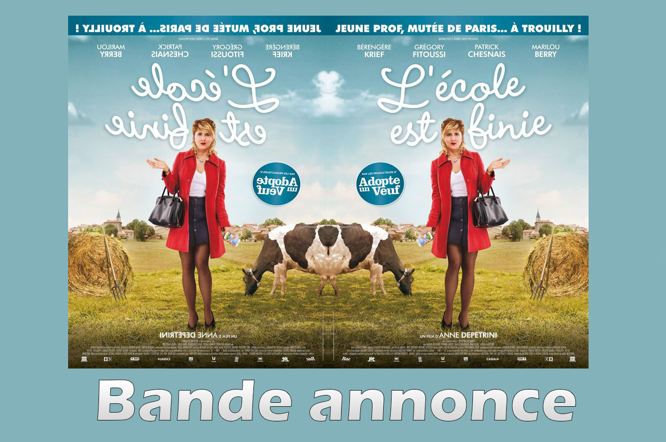 Après La Poste et Bienvenue chez les Ch’tis et les médecins dans Un village presque parfait, voici une prof citadine à plouc-village. Sortie aérée pour le début des vacances. Bande-annonce du nouveau film d’Anne Depétrini, réalisatrice d’Il reste du jambon.