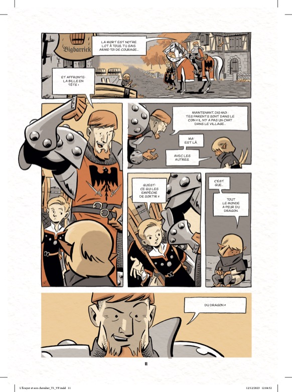 Résumé : Sire Kelton d’Eldergard est un preux chevalier : sûr de sa force, il terrasse ses monstres et ennemis, sillonnant les routes pour mener à bien de nobles quêtes. Tout de moins, c’est ce qu’il raconte à son écuyer, plus porté sur les livres que sur le combat, et aux habitants de Bridgetown. Ces derniers voient avec un certain espoir l’arrivée du chevalier, car le village vit dans la crainte du dragon qui rôde à quelques encablures. Celui-ci semble être à l’origine des désastres qui frappent le village : pont en ruines, maison incendiée, mauvaises récoltes… Fidèle à sa réputation, Kelton d’Eldergard promet aux habitants de les débarrasser du dragon, et part bille en tête pour l’affronter. Il laisse derrière lui son écuyer. Ce dernier décide de mener son enquête sur les phénomènes qui frappent le village et, grâce à son esprit de déduction, en apprend beaucoup sur le fondateur du bourg, le magicien Elden Augerhand, désormais disparu. Et si c’était lui qui était à l’origine des maux de Bridgetown ?