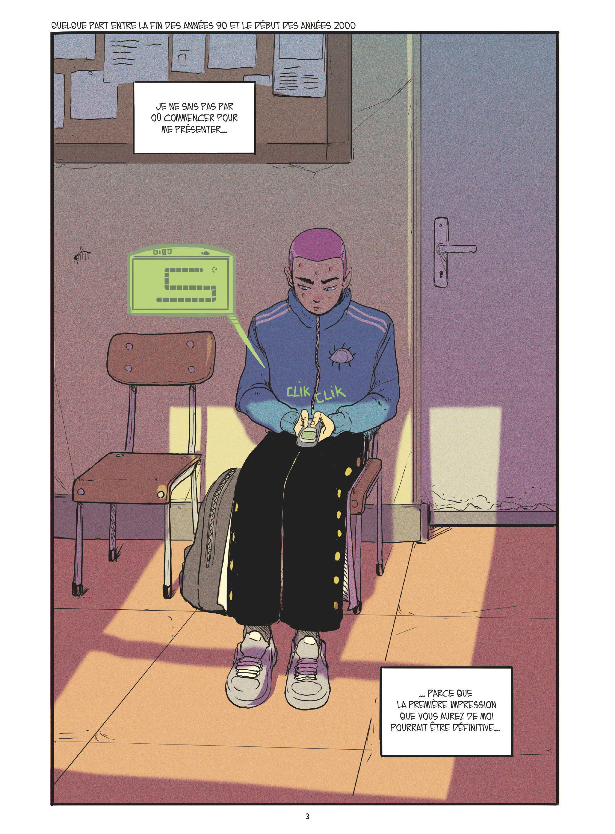 On devine sans mal que l’auteur s’inspire de son vécu pour créer son héros, passionné de dessins au début des années 2000, rêvant de devenir gérant d’un magasin de jeu vidéo, et qui ne trouve pas sa place parmi ses pairs. Seule une autre « freak », Mims, lui accorde une réelle attention, car elle-même cultive une allure punk et rejette le conformisme.