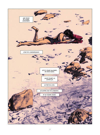 Résumé : L’étreinte raconte l’histoire de Benjamin et Romy. Il est sculpteur, et elle est son modèle, ils sont ensemble. Sur la route, en revenant de vacances à Cadaquès, Benjamin fouille son portable est reste soudain fasciné par une photo prise à la volée sur une plage. Au milieu, une femme en maillot une pièce noir, allongée, les cheveux devant le visage, lisant un livre. Il ne parvient pas à décoller les yeux de cette photo. Pourquoi ?