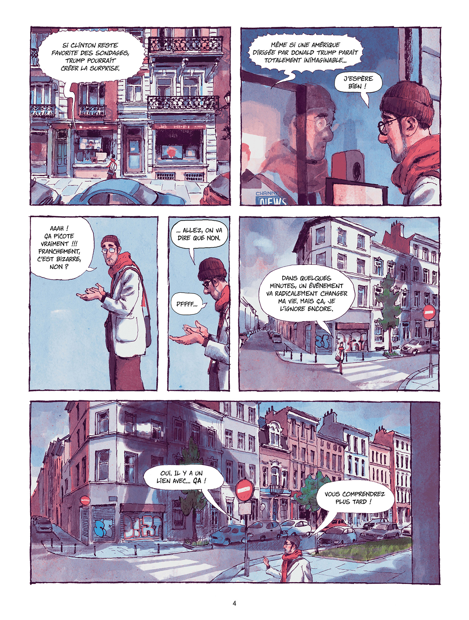 Apologue vivant et sans venin, L’Éveil est une BD à la fois concrète, car excellent reflet du monde d’aujourd’hui (du moins d’une capitale européenne) et éthérée, car c’est un peu comme si un rêve devait aboutir dans ces pages.