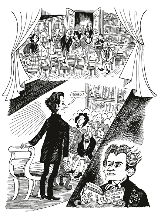 On fait aussi connaissance avec le docteur von Krafft Ebing qui écrivit Psychopathia Sexualis, manuel de référence sur les pathologies sexuelles et dans lequel il utilisa une partie du patronyme de Sacher-Masoch pour qualifier le masochisme.