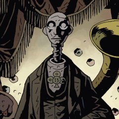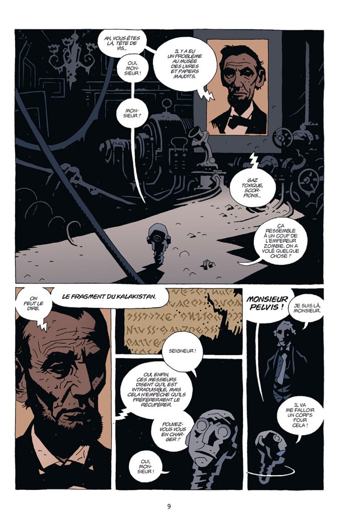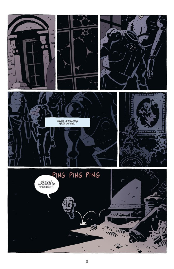 Il y a du Poe et du Pratchett dans ce petit recueil sans prétention mais non sans humour, en apparence sans queue ni tête. Pourtant, entre la tête de vis et la queue du serpent, ces petites histoires achèvent de montrer le talent de Mike Mignola, celui de conteur d’une part, celui de poète d’autre part. Ce monde fantastique, où les pyramides côtoient Mars, où les démons charlatans et les haricots magiques s’entremêlent, n’est pas si éloigné de celui de Hellboy. La magie la plus obscure ne l’empêche pas d’être utilisée à des fins les plus ironiques, et, si morale il y a, elle ne peut s’empêcher de donner à la fois un horizon sérieux et étrange, mais toujours avec un enrobage d’humour patenté. Ambiance décontractée, que l’auteur prévient dès la préface, prétextant une invention sur un coup de tête pour sa fille, des fragments d’imagination qui ne pouvaient se développer en histoire complète, un coup de chapeau quand on sait qu’une fois publiée, ces nouvelles avaient rencontré un franc succès, et des prix Eisner en pagaille.