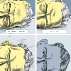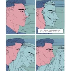 - La figure spectrale du grand-père se détache progressivement du dessinateur dans cette planche saisissante, fondée sur un dessin au trait et des couleurs en aplats.