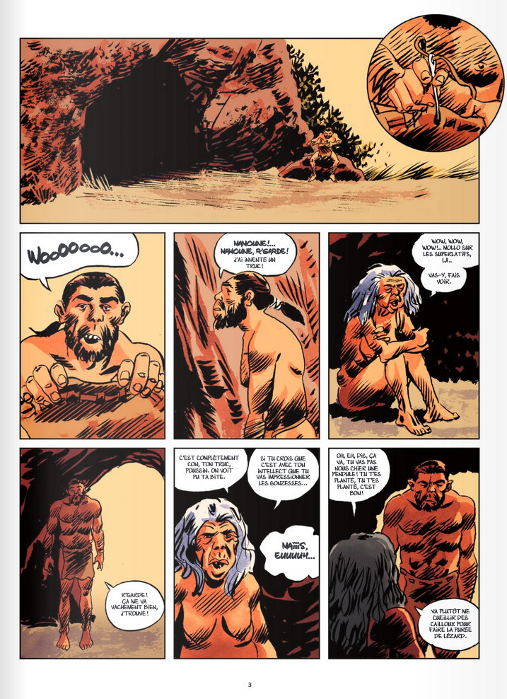 Critique : Adam quitte le foyer familial pour s’installer avec Eve dans une grotte vachement classe. Il y a les peintures rupestres à faire mais sinon… Voilà le genre de situations burlesques où se retrouvent les personnages. On prend un plaisir goguenard à cette vie préhistorique décalée car les personnages se comportent avec nos références contemporaines, ce qui fait le sel humoristique de l’album.