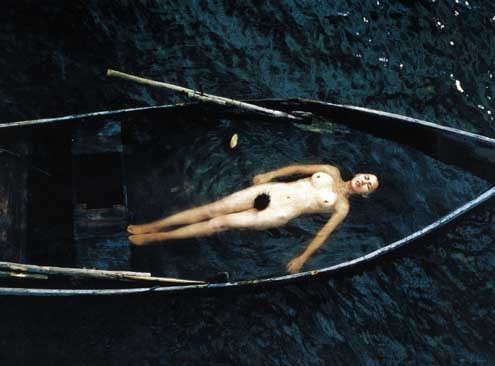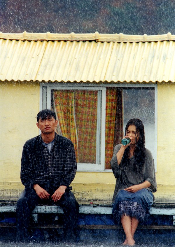 De Crocodile (1997) à Entre deux rives (2015) en passant par L’arc (2004), l’élément aquatique a toujours hanté l’imaginaire de Kim Ki-duk : ainsi le film L’Île s’ouvre-t-il sur une immense étendue d’eau aussi irréelle qu’indéfinie. Y sont ancrés dans la brume des cabanons flottants aux couleurs pastel qui offrent aux amateurs de pêche l’opportunité de s’isoler ou aux couples illégitimes celle d’assouvir leurs plaisirs. Aussi énigmatique que mutique, Hee-jin, naïade à la beauté troublante et à la psyché troublée, transporte les clients sur sa barque et leur vend vivres et leurres ainsi qu’à l’occasion, ses propres appas.