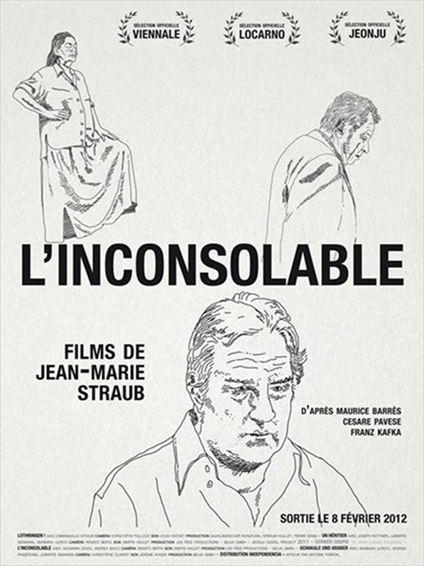 – L’Inconsolable : on ne sait pas ce qu’est un homme, un homme ne sait pas qui il est tant qu’il n’a pas trouvé sa blessure, qu’il n’est pas descendu dans son obscurité intérieure. Le cinéma est lumière, celui de Jean-Marie Straub plus que tout autre. Mais une lumière qui se souvient de l’ombre - qui vient de l’ombre, par-dessous. Les rayons du soleil, à la fin de L’Inconsolable touchent le front d’un homme qui revient de loin - du cœur des ténèbres.
