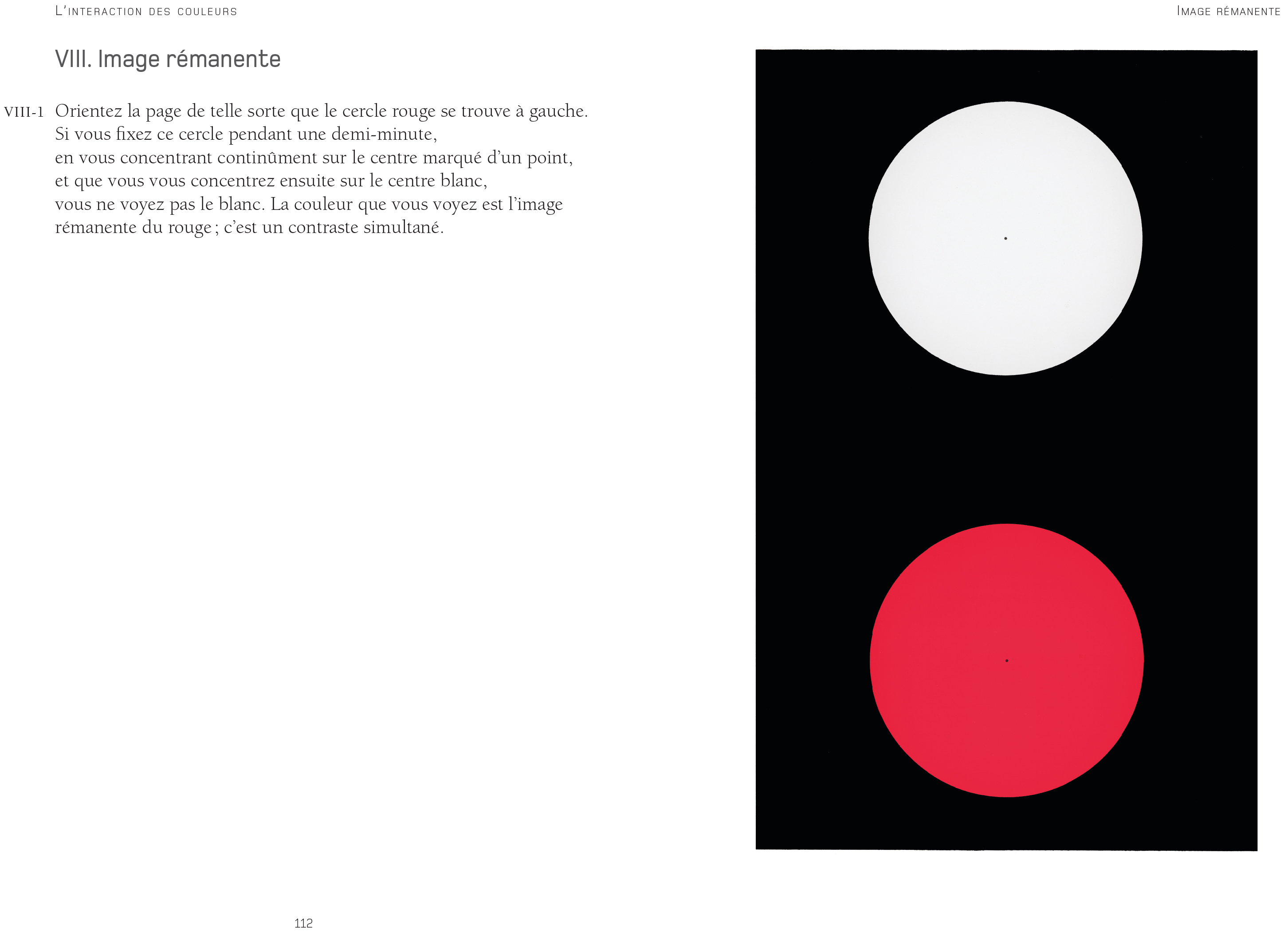 En effet, ce condensé du cours et de la vision de Josef Albers comporte de nombreuses illustrations, quatre-vingts en tout, des reproductions de planches de travail, d’associations de nuances chromatiques, permettant de bien mieux comprendre le cours.