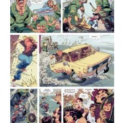 Il dessine également ce récit où la vie coule dans chaque case. Les personnages semblent prêts à sortir du cadre pour nous entraîner avec eux dans l’action. On suit le récit en se demandant quelle direction l’histoire peut prendre. Le travail des couleurs, à l’aquarelle, nous offre de magnifiques teintes, des nuits bleutées aux volutes de rose, aux verts naturels. La couleur renforce le relief et la dynamique des dessins. Ruben Del Rincon nous offre de beaux décors, des vues du ciel, mais il sait aussi mettre l’accent sur les personnages, resserrant son cadrage sur des yeux, un visage, une émotion et là, il oublie le contexte pour poser une simple couleur derrière le personnage. La BD se conclut avec un très beau cahier graphique de plusieurs pages comprenant des recherches de couvertures, de personnages et de planches.