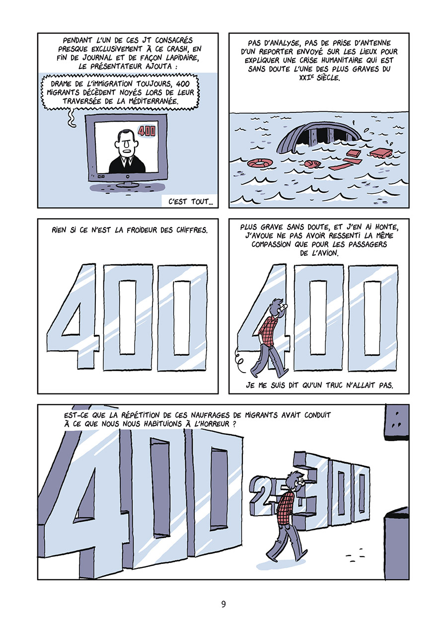 Résumé : Fabien Toulmé voyait les chiffres des migrants des migrants morts en méditerranée grossier et s’étonnait de ne pas s’en émouvoir réellement. Alors, pour rendre concret l’humanité obligée de fuir sa terre et sa famille, il a rencontré Hakim, réfugié en France. Voici le premier tome de son odyssée, un long chemin de plusieurs années...