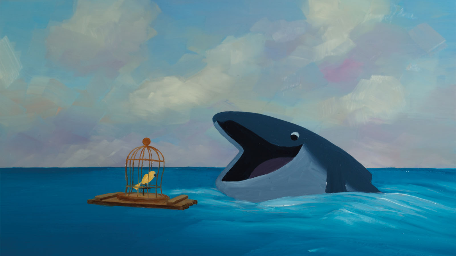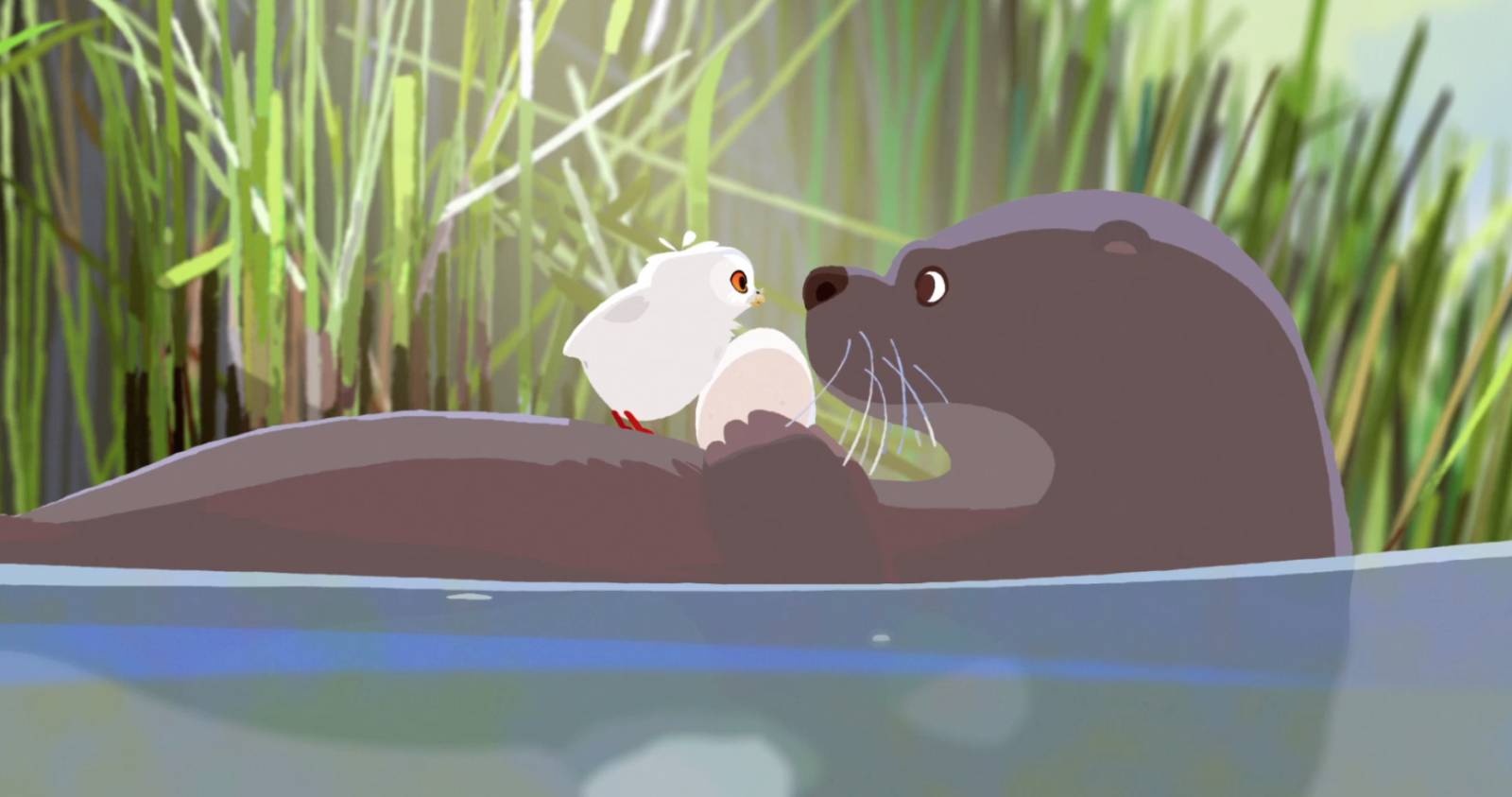 Si L’odyssée de Choum qui donne son nom à l’ensemble du film est consacré au parcours de deux adorables chouettes, ce sont d’autres oiseaux qui ouvrent le bal. Avec Le nid, l’Allemande Sonja Rohleder nous propose de partager la parade nuptiale d’un drôle de volatile solitaire à la recherche de l’âme sœur. Sur fond noir, des formes stylisées aux couleurs vives se dessinent sous nos yeux, pour donner forme aux animaux et tisser un ballet d’une fascinante légèreté, tandis que la musique accompagne chacun des plans d’une mélodie veloutée et orchestrale. Il est déjà temps de quitter ces tableaux d’ombre et de lumière contrastés à la beauté toute picturale pour rejoindre L’oiseau et la baleine. Il est ici question d’entraide, une valeur à l’immédiate portée des enfants, entre un oiseau en cage, seul rescapé d’un naufrage, qui initie à l’art du chant un baleineau perdu dans l’océan, après avoir été chassé par les siens, au prétexte qu’il n’est qu’un bien piètre ténor. À travers ce film sans dialogue, où la musique et les couleurs servent tout autant le récit que les émotions, la réalisatrice irlandaise Carol Freeman met en scène un conte initiatique dont la bande originale de haute volée, la poésie visuelle et sa subtile alliance des contraires, ainsi que les thématiques abordées, impressionnent et forcent l’admiration.