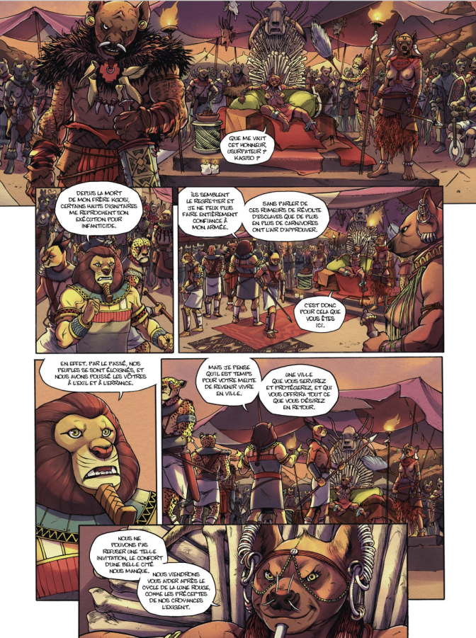 Bruno Bedassi maîtrise le récit de son histoire mais aussi le graphisme. Son dessin est toujours de qualité. Les actions nous entraînent dans des affrontements épiques, et le sang coule à flot dans ces derniers combats. Notons la rapidité des hyènes et leur rendu graphique qui surprend.