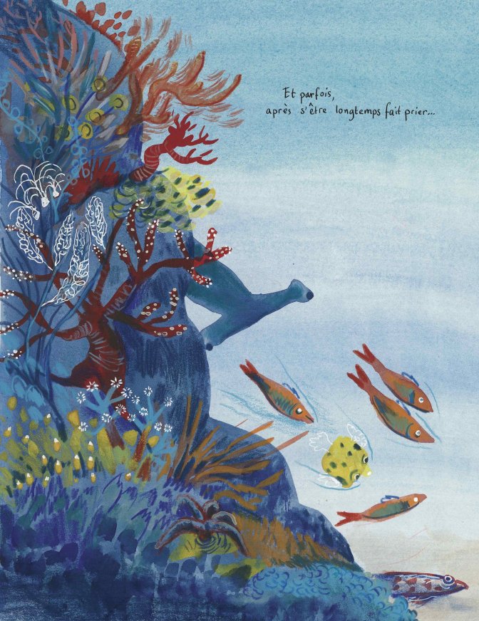 Résumé : De nuit, un facteur maritime entre en collision avec une baleine vieille de cent mille ans. S’il doit alors renoncer à distribuer son courrier aux marins, l’imposant mammifère l’aide à retourner sur le rivage… et lui prête un livre. Car cette baleine a une particularité : elle abrite une bibliothèque !