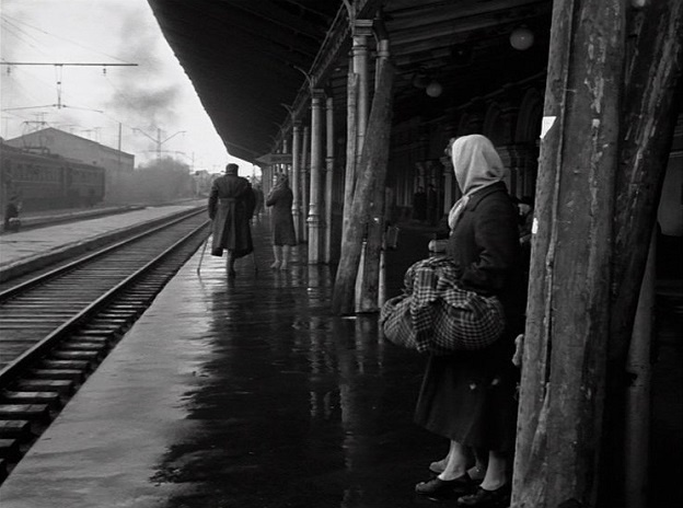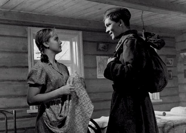 Résumé : Pendant la Seconde Guerre mondiale, Aliocha, un jeune soldat russe s’étant distingué sur le front, se voit offrir une décoration. Il refuse toutefois ce grand mérite et, au lieu de cela, demande à obtenir une permission pour rendre visite à sa mère. Son voyage est long et difficile : il doit sauter de train en train, et de nombreux obstacles lui font prendre du retard. Et puis il fera la rencontre de Choura, jeune fille voyageant dans la même direction que lui. Pendant le trajet, tous deux font connaissance, et tombent amoureux.