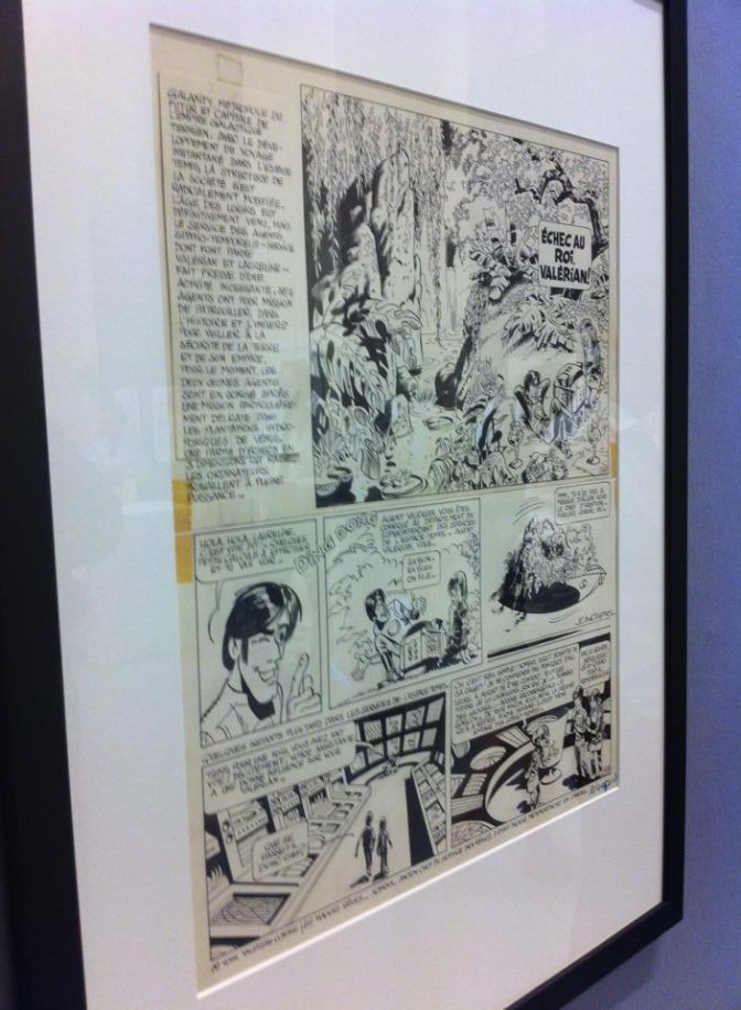 C’est particulièrement le cas de Jean-Claude Mézières qui bénéficie d’une exposition à la Mairie du 5ème arrondissement, Salle René Capitant. Une exposition exceptionnelle autour de Valérian et Laureline, les héros emblématiques de J-C Mézières. Exceptionnelle car toutes les planches sont prêtées directement pas l’auteur. Il s’agit en effet de son fonds personnel et cela inclut la toute première planche de Valérian. Il a également accepté de dévoiler une partie de ses travaux sur le Cinquième Élément, ce qu’il ne fait que depuis peu de temps. La collaboration entre J-C Mézières et J-L Besson avait en effet été tenue secrète le temps de la préparation du film, et les travaux préparatoires restent encore à ce jour peu dévoilés.