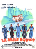 Critique : Dans la mémoire collective, La belle équipe est associée au Front populaire, ce qui est discutable, et à la chanson Quand on se promène au bord de l’eau. Mais on est chez Duvivier : la collectivité se dissout sans espoir, et la chanson, dès le générique, est aussi jouée à l’accordéon de manière mélancolique. C’est que dans cette histoire de camarades, cinq gagnants à la loterie construisent une guinguette, le ver est dans le fruit ; le destin tragique prend diverses formes mais toutes concourent à la destruction d’une utopie. Que ce soit l’arrêté d’expulsion de Mario, réfugié espagnol, Jacques qui part pour ne pas troubler un couple, la chute de Tintin (Raymond Aimos) au paroxysme de la fête, la belle garce Gina (Viviane Romance) ou le propriétaire, tout se ligue contre le rêve. D’un autre côté, tout se qui devrait les aider tient du hasard (la loterie) ou de la tricherie (le poudrier du début). Décidément, le fameux pessimisme de Duvivier tourne à plein, même dans ce qui devait être une ode à l’amitié et à la collectivité.