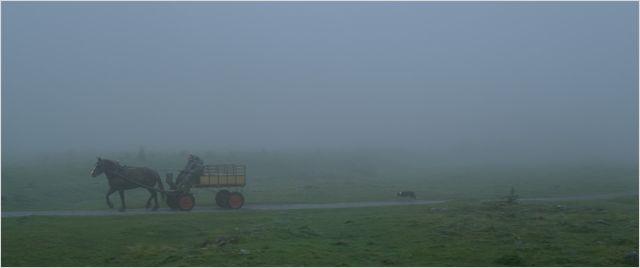 Notre avis : C’est l’aube dans une campagne baignée dans la brume. On distingue à peine, dans un plan d’ensemble fixe, une petite caravane blanche assoupie. Et puis la caméra nous fait pénétrer dans cette caravane. Un homme barbu d’une quarantaine d’années fume, puis frappe sur la vitre et crie : « Debout les gars ! » Un bel adolescent, à la chevelure blonde et bouclée, à la silhouette robuste, sort dehors tout habillé et crie à son tour : « Debout les poules ! » Vite rejoint par l’homme barbu et un jeune homme un peu plus âgé que lui. Le trio se retrouve rapidement dans une carriole d’un autre temps, tirée par un cheval qui emprunte une route de montagne au son d’une musique country. Non, nous ne sommes pas au début d’un western. C’est la première séquence de La Belle Vie – l’histoire d’un trio inspirée d’un fait divers qui a défrayé la chronique en 2009 : l’affaire Fortin.