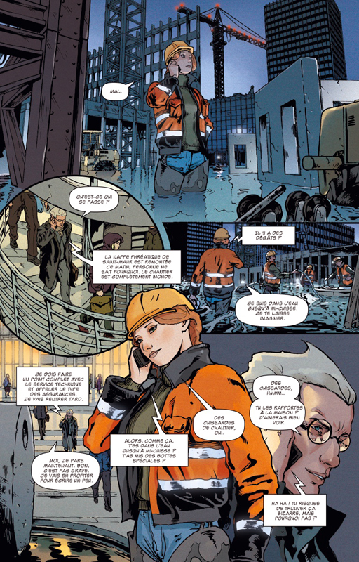 Pour ce qui est du graphisme, l’émancipation se fait aussi, et ce dès le début. En fait, c’est par petits clins d’œil, notamment les affiches, les couvertures de comics et les flashbacks que se s’effectue le rappel avec les anciens tomes. Avec le métro, le GIGN, les gamins de la rue parisienne, l’atmosphère a changé et ne veut plus rester dans le passé. La transition est plutôt rapide, et ce comic aux accents français est ainsi assez dépaysant, comme si les américains perdaient l’apanage de ces histoires de super-héros, de nouveau, et pour notre époque qui plus est.
