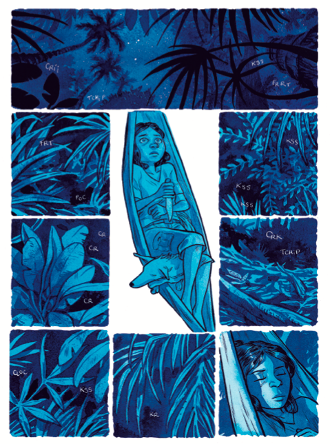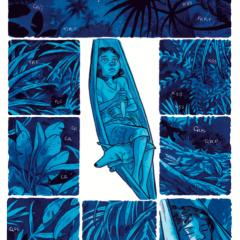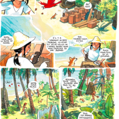 Le dessin au trait rehaussé d’aquarelles de Léonard Chemineau s’avère particulièrement séduisant. On est happé par la beauté de l’île et des paysages sous-marins, notamment le corail qui figure sur la couverture. Si la nature est magnifiée dans les planches, elle s’avère également particulièrement dangereuse, et les scènes de tempête sont également très réussies.