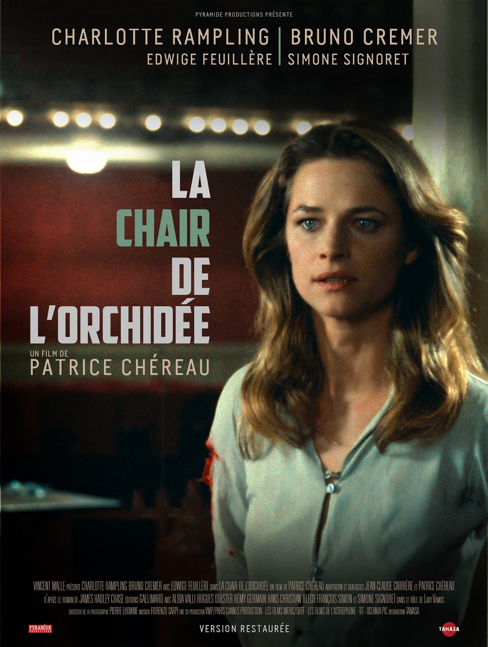 Le film : Malgré un rythme parfois languissant, voire erratique, La chair de l’orchidée mérite mieux que sa réputation et se sort avec les honneurs d’une relecture baroque du film noir. S’il se barde de références multiples (au noir, bien sûr, mais aussi au fantastique avec l’assaut de la maison et même des personnages évoquant les zombies), il trouve un chemin sinueux entre thriller paranoïaque et tragédie, avec des comédiens magnifiques et une esthétique soignée. On perçoit mieux aujourd’hui sa dimension allégorique : Chéreau sentait la disparition d’un monde, celui de l’art, incarné par Simone Signoret, au profit d’un autre, froid et meurtrier, fondé sur l’argent roi.