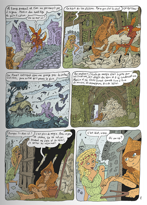 Résumé : Renart est dans de beaux draps : pour que persiste la magie dans le monde, et que les animaux puissent continuer à parler et vivre comme des êtres humains, il lui faut réveiller Merlin qui a été pétrifié. Il part donc à l’aventure accompagné notamment de Takka, un apprenti magicien pas bien doué, et de Marie de France, femme du fameux enchanteur aux multiples ressources.