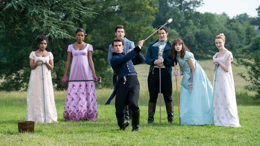 - La famille Bridgerton et les dames Sharma en train de jouer au croquet