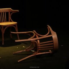 Critique : C’est un homme seul, assis sur une chaise, qui s’amuse à tuer le temps avec une toupie qu’il fait inlassablement tourner dans ses mains. Cet homme s’appelle Jean-Baptiste Clamence. Il se définit comme un juge pénitent, après avoir exercé la profession d’avocat à Paris ; il vit dans une capitale européenne qui dans la vraie vie s’appelle Amsterdam, et ici porte le curieux vocable de Mexico-City. La Chute, largement revisitée par le comédien et metteur en scène Jean-Baptiste Artigas, donne le change. Une conversation s’engage entre cet homme planté sur sa chaise, et un autre, invisible, qui pourrait être le double du personnage ou un voyageur curieux.