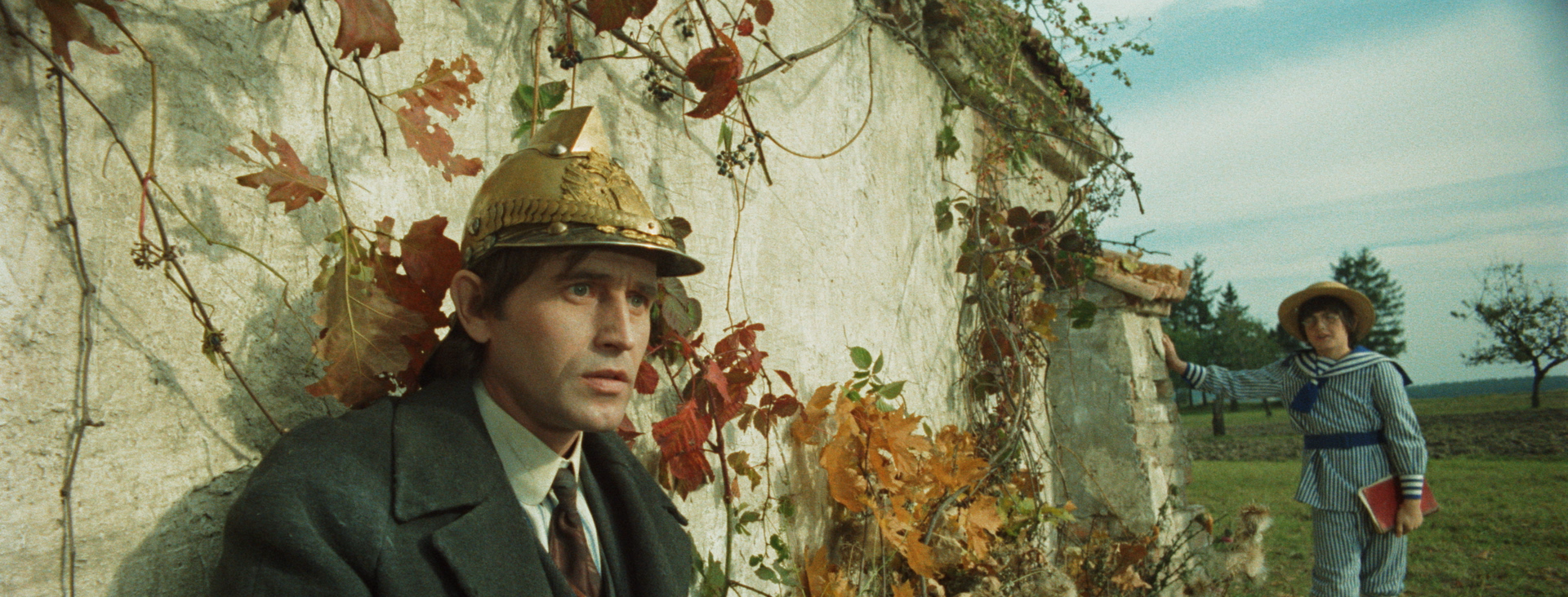 Errance chimérique qui fait penser au Fellini période Juliette des esprits ou au Tarkovski post-Solaris, La Clepsydre est avant tout une foire géante et ininterrompue, un retour glauque en enfance (le personnage principal, dans son corps d’adulte, est perçu par tous comme étant à nouveau prépubère), un cirque où l’étonnement chaleureux des premières excusions oniriques est vite rattrapé par son recto sordide. De ce festival, il faut apprécier l’ampleur comme la minutie. Au moyen de travellings avants ou verticaux, la méthode du cinéaste est toujours la même : s’émerveiller d’un nouveau décor à la tonalité ravissante et détonante par rapport à celle du précédent (on pourrait presque les résumer par leur couleurs propres : le décor vert, le marron, puis le bleu, le jaune et enfin le gris) pour donner ensuite à voir la veulerie, la concupiscence, la décomposition, au travers d’accessoires, de costumes, d’éléments de décors soigneusement choisis et méticuleusement montrés à l’œil. Ainsi un parchemin, se déroulant, étale ses trous et les vers qui le rongent ; ainsi un lit, une fois visité son dessous, se révèle caverne d’Alibaba. Chaque plan large, trésor de couleurs et de formes, demande à être fouillé, exploré. Chaque gros plan, par la minutie apportée aux objets cadrés, donne à sentir, renifler, gouter.
