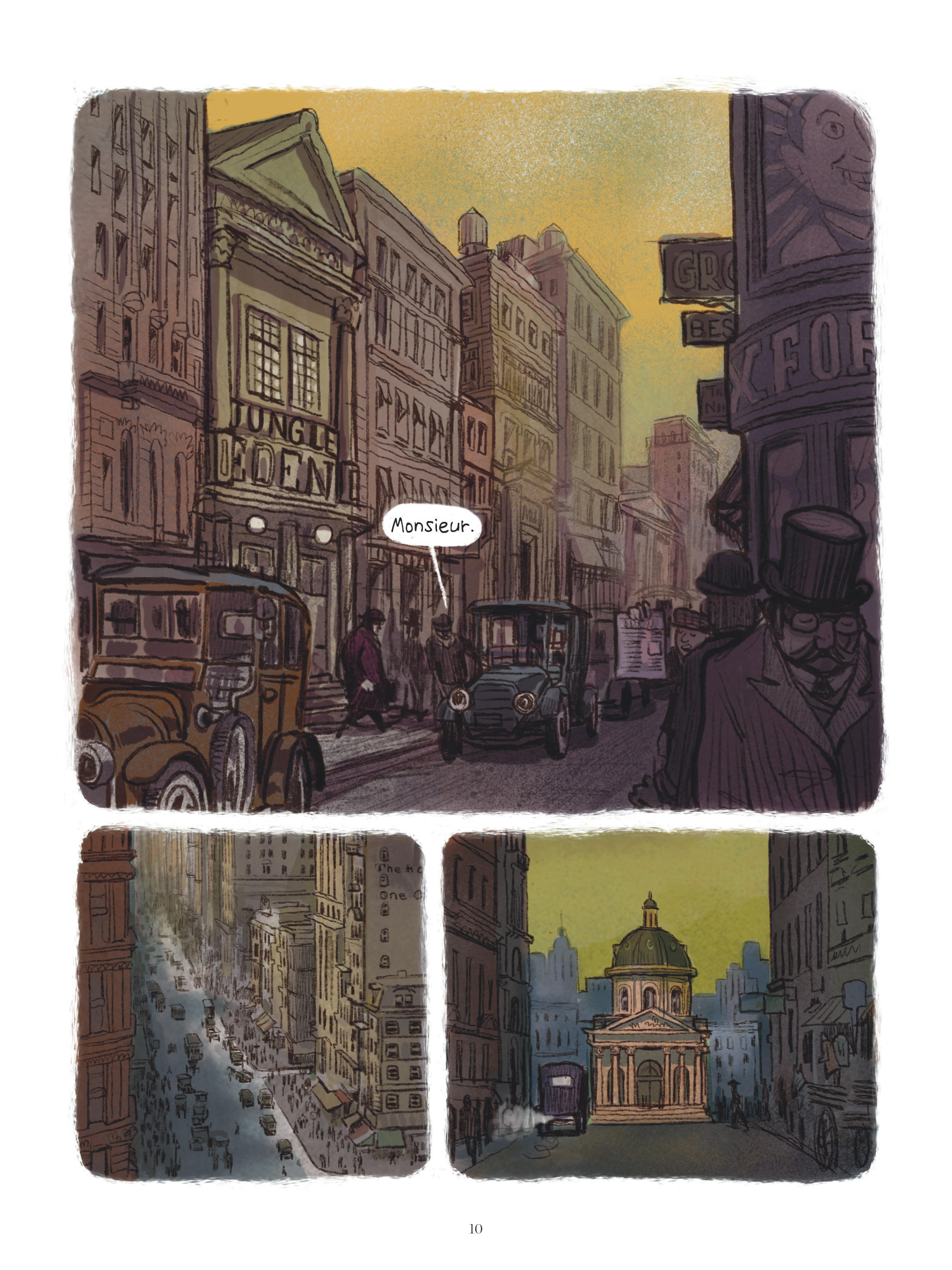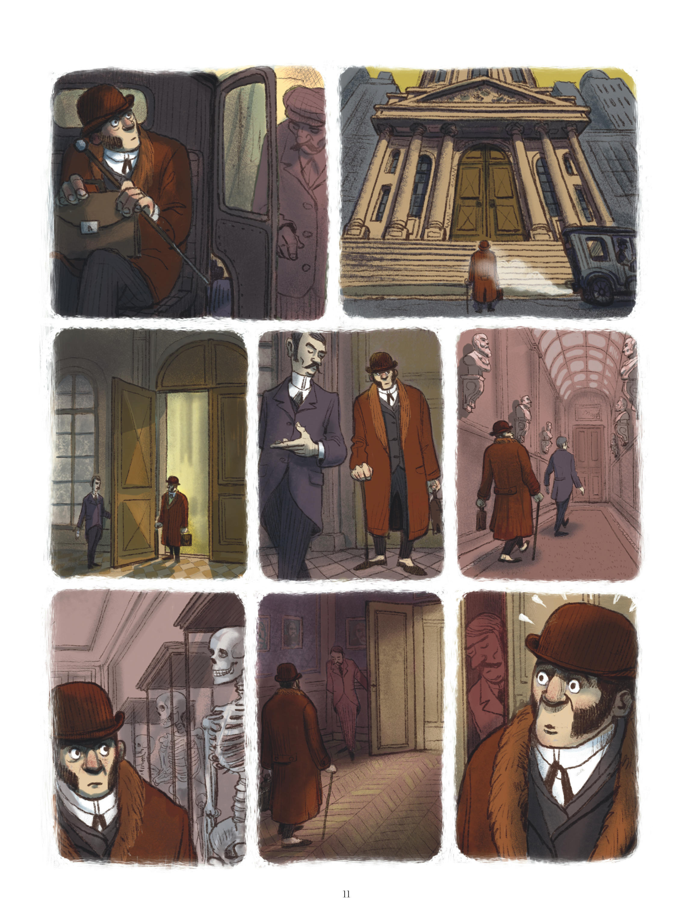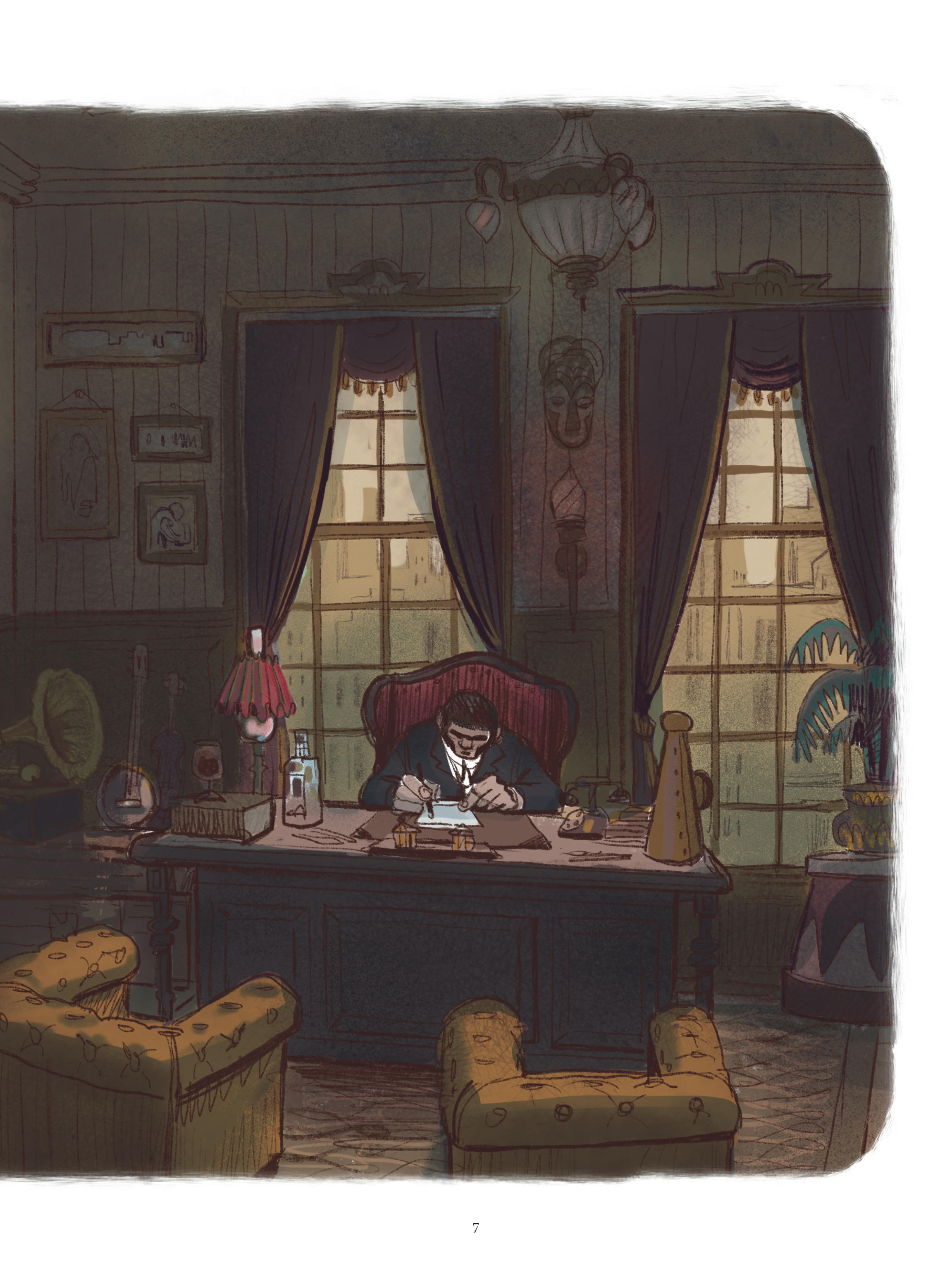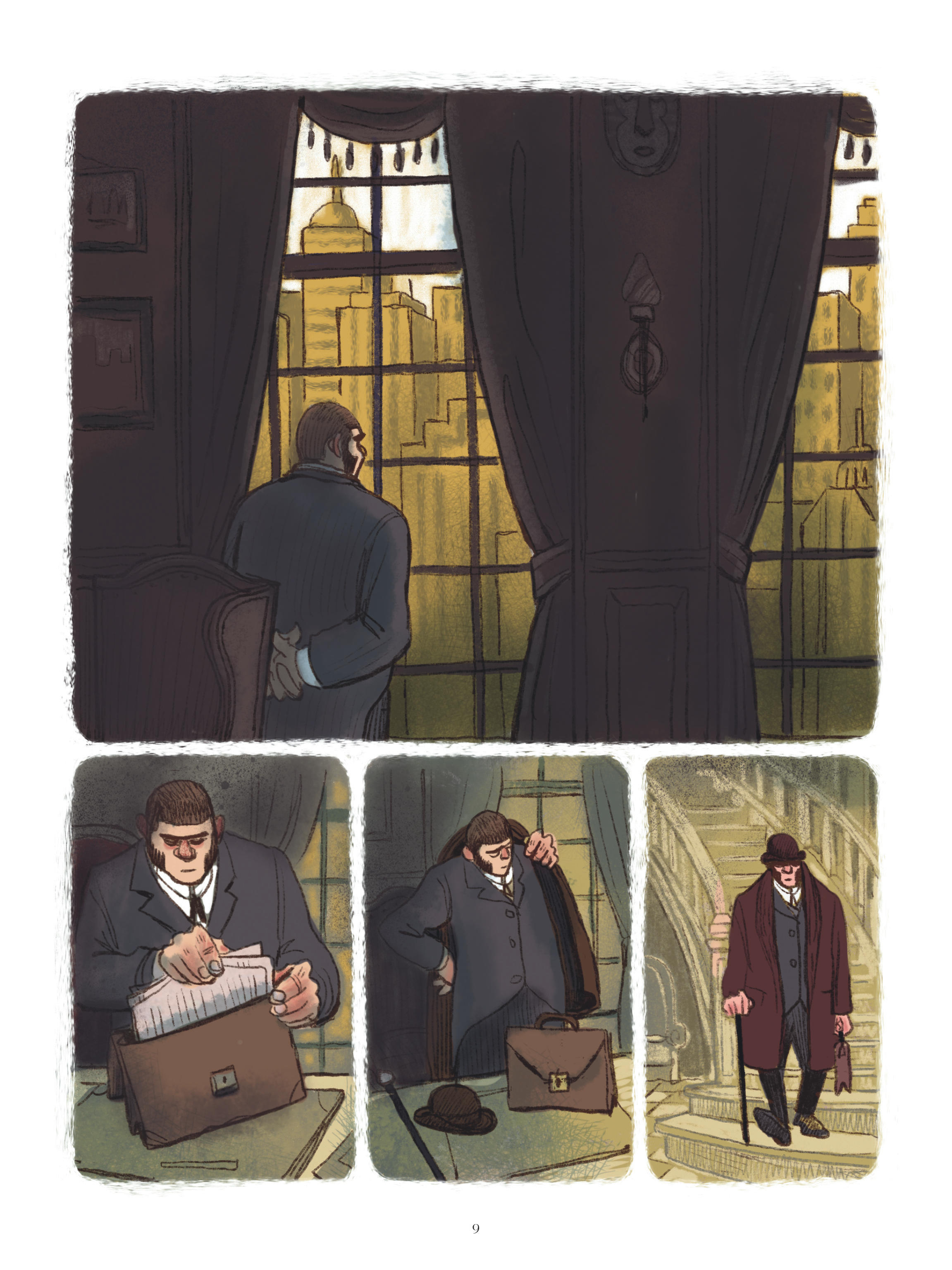 Mahi Grand laisse de l’espace à son histoire, privilégiant des pages plutôt amples comportant fréquemment un nombre réduit de cases ou recourant aux pleines et doubles pages. Quant au dessin, il possède le dynamisme et le mordant nécessaires. Semi-réaliste, il force volontiers certains traits pour tirer ses portraits (de marins, de scientifiques, de domestiques…) du côté de la caricature. Comme l’ensemble de l’album, il monte en puissance au fil des pages et sert parfaitement une chute à la cruauté simultanément déprimante et, avouons-le, réjouissante.
