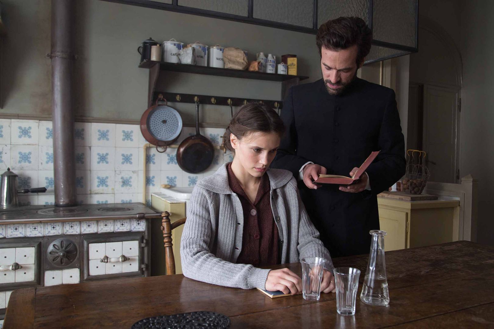 Mais cette belle rhétorique élégamment portée par une Marine Vacth émouvante dans la peau de cette jeune femme déchirée entre ses croyances et les arguments brillants de cet homme persuasif, et un Romain Duris à l’œil vif et au doux sourire enjôleur, risquerait de devenir indigeste sans l’étude psychologique de la population locale. Les opinions des uns et des autres sur le lieu de travail (en particulier dans le bureau de poste), les soupçons sur ceux qui trempent dans la Collaboration ou au contraire ceux qui résistent, le comportement des soldats allemands, sont autant de détails qui animent le récit, par ailleurs empreint d’humour et de légèreté. Malgré le conflit en toile de fond, règnent des instants de grâce réjouissants que l’on doit à la sérénité et la tolérance des deux protagonistes. Romain Duris, à qui la soutane sied merveilleusement, sait trouver le ton juste grave et lent pour habiller son personnage d’une dose équilibrée de vivacité et de mystère. On ne voit pas le temps passer en regardant ces personnages talentueusement éclairés de lumière ou d’obscurité selon les circonstances ; et lorsque le mot fin s’inscrit, on se sent enveloppé d’une paix réconfortante. En réactualisant de manière très personnelle ce livre datant de 1952, Nicolas Boukhrief nous prouve que les idéaux ne sont pas morts. Les modes et les usages changent mais la puissance des sentiments reste.