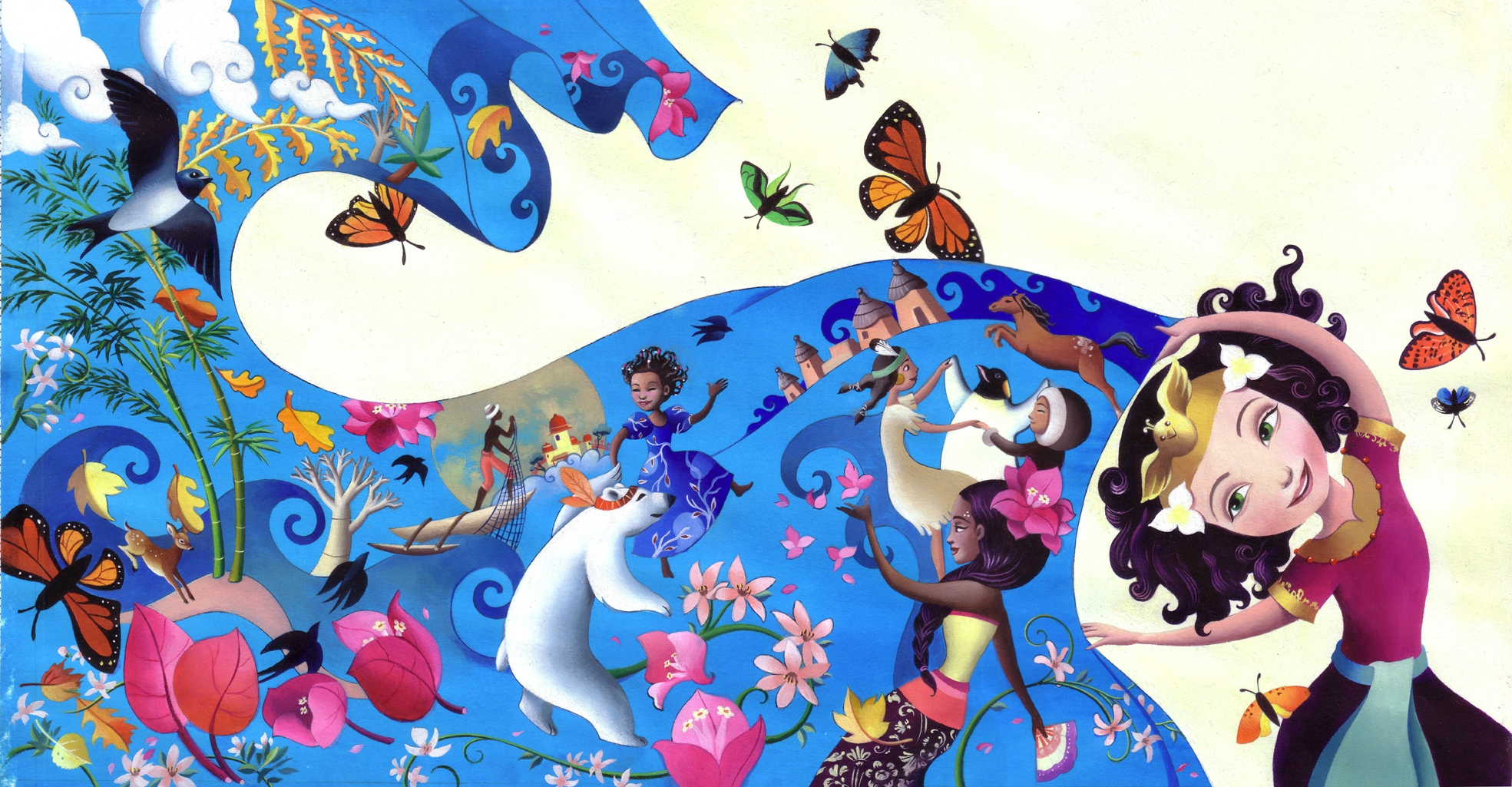 La couleur du bonheur , sorti en 2013, est une histoire de princesse dont le maitre d’arts lui propose un exercice hors du commun : trouver la couleur du bonheur. Alors à travers ce qu’elle a pu observer de la nature et des animaux qui l’entourent, Tiara propose des couleurs … Mais son maître l’emmène plus loin, au-delà des frontières, pour trouver ce que la couleur du bonheur pourrait être chez ses voisins, indiens, balinais ou africains.