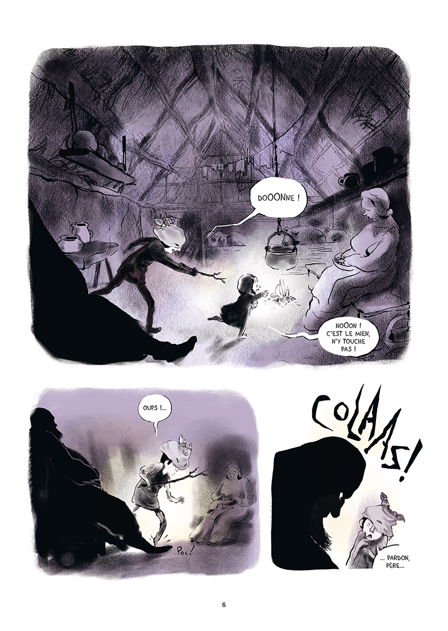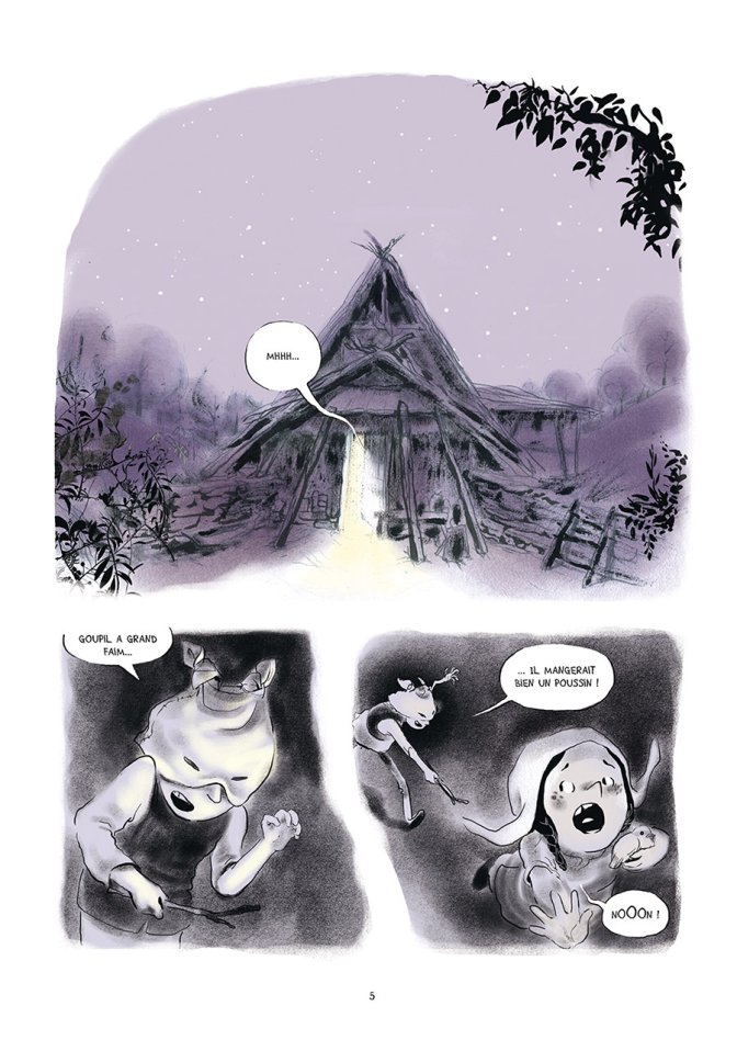 Le dessin n’a pas cette double disposition, car si les planches peuvent avoir de la violence en elles, les traits, les décors, les jours et les nuits qui s’écoulent ont du début à la fin cette finesse puérile, presque espiègle malgré le noir et blanc, malgré l’hiver et la mort, le difforme et l’horrible. Jusqu’au bout, on croit à un monde meilleur, à un destin, et c’est bien le dessin qui anime cette foi du lecteur, si proche et si loin des acteurs de cette croisade. La peur ressentie va dans ce sens, celle des contes d’autrefois, du mauvais homme et du froid, mais le monde en soi ne se révèle pas désespérant, sinon juste inquiétant par moments.