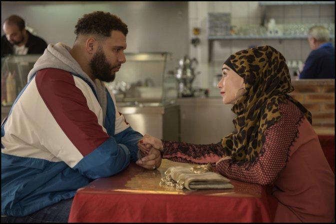 Dans un premier temps, Patience se présente comme une employée douce et dévouée à ceux qui comptent sur elle, pour décrypter les conversations des malfrats qu’ils poursuivent. Elle bénéficie également de la protection de son supérieur hiérarchique (Hippolyte Girardot, tout à fait crédible dans ce rôle de commandant de la brigade des stups, à la fois autoritaire avec ses hommes, et naïf avec cette femme qui le manipule), avec qui elle entretient une relation amoureuse, qui semble lui assurer un équilibre sentimental et professionnel. Si, depuis son plus jeune âge, Patience est rôdée à la rouerie et au mensonge, elle possède aussi un vrai sens de la solidarité. D’ailleurs, c’est en rendant service à l’aide-soignante, qui prend soin de sa mère bien mieux qu’elle-même ne saurait le faire, qu’elle dévoile l’autre aspect de sa personnalité et donne un coup d’accélérateur au récit, jusque là gentiment ronronnant. Cette fois, c’est elle qui mène la danse. Frottant sans crainte sa frêle silhouette aux carrures athlétique des malfrats et aux méthodes faussement musclées de la police, elle manie avec bonheur irrévérence et menaces. Méconnaissable sous son abaya noire et son foulard coloré, affublée d’énormes lunettes dignes des élégantes de Dubaï, l’égérie de Claude Chabrol, qui n’a jamais cessé d’alterner cinéma d’auteur et films à grand public, prend un évident plaisir à se jouer des apparences et à s’accaparer toute l’énergie de l’histoire, pour faire de cette daronne intraitable une patronne de la drogue délicieusement indigne. Ses relations en demi-teinte avec sa mère, à qui Liliane Rovère accorde sa gouaille et sa spontanéité, complètent judicieusement ce tableau attachant d’une femme ni tout à fait ange, ni tout à fait démon.
