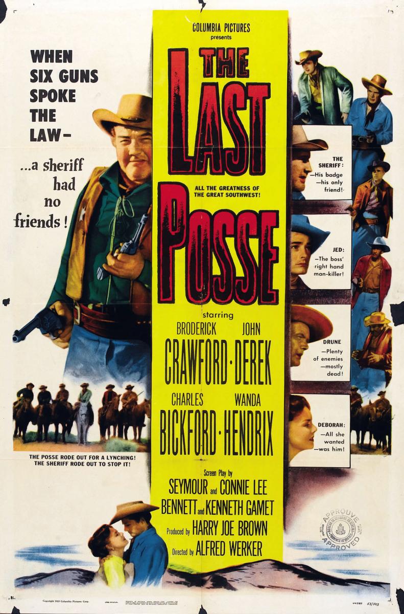 Notre avis : Dès les premières images, ce western s’avère empreint de gravité , avec ces cavaliers fatigués et une musique sombre. Sa curieuse construction, en trois flash-back racontés par trois personnes différentes, ne dissipera pas cet aspect amer qui perdure malgré une fin qui, bien qu’assez morale, conserve la dimension tragique initiale. Tragédie, pourrait-on dire, au sens presque strict puisque l’itinéraire du shérif, interprété magistralement par Broderick Crawford, est une mort annoncée : instable sur son cheval dès les premières images, il ne cesse de tituber, de tomber, que ce soit à cause de l’alcool ou d’une blessure ; de la même manière les autres personnages le mettent de côté, l’ignorent ou le méprisent. Par le dialogue, de manière un peu lourde, mais surtout par l’image et le scénario, le shérif acquiert une épaisseur d’homme blessé et hanté par son passé et dont tout le film peut se lire comme une tentative pour regagner sa dignité ou, visuellement, pour rester debout.