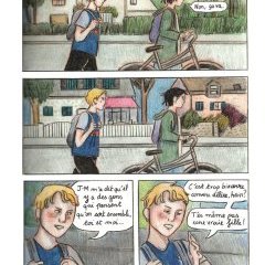 Au premier abord, le style crayonné, qui collerait impeccablement à un album jeunesse sur l’aventure joyeuse ou les sentiments enjoués, détonait, semblait en décalage avec le ton. Mais très vite, quand les couloirs du collège apparaissent, quand la maison de Charlie se dévoile, ce crayonné très simple paraît s’intensifier, s’ancrer dans les deux personnages, ingrates comme deux vraies adolescentes, mais brillantes, vivantes et éclatantes. Le style se révèle alors comme un pari, un choix bienvenu, un décalage qui porte la marque du roman graphique d’aujourd’hui, bien dans son temps et son thème.