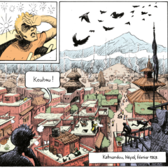 Un jeune européen n’a probablement jamais été un partenaire de la lutte Khampa, en contact avec les esprits et les forces surnaturelles, témoin de l’enlèvement du Dalaï-Lama et éphémère compagnon de Conan Doyle Junior... Probablement pas, mais cela vaut le coup de l’imaginer. Loïc Verdier a donc fait ce pari, à savoir tisser une trame fictive au cœur d’épisodes d’un conflit réel, en pleine guerre froide, entre agents de la CIA infiltrés et groupe d’intervention chinois. Au milieu, une timide histoire d’amour qui parcourt le livre, fuyante, incomplète, presque frustrante, comme le final du livre en quelque sorte, mais assez saisissante et impressionnante de vécu, comme le livre, là encore, au final. C’est un peu comme si tous ces personnages avaient existé, comme si les paysages étaient tirés de photographies, comme si les rites effectués par ces nomades étaient séculaires... Pourtant, deux de ces trois conditions sont vraies, et tout l’album se construit sur la confusion de la première condition, tant le héros Albertus a tout d’un futur dessinateur de BD, artiste cerné et au teint cireux, exalté et un peu lâche, doué d’une volonté farouche et d’un idéalisme passionné propre à l’artiste.