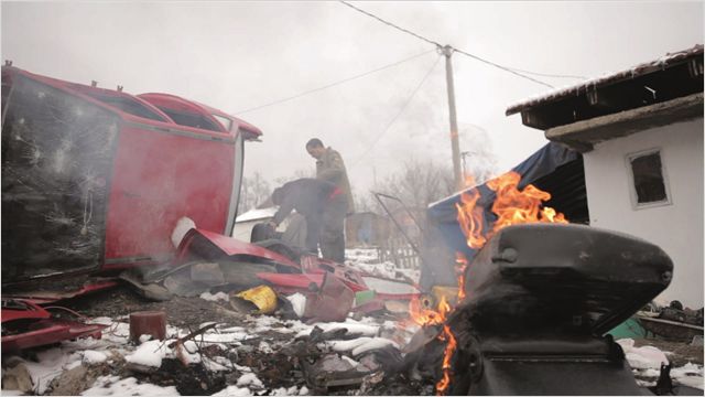Le réalisateur installe avec simplicité et en prenant son temps le contexte. Il filme le quotidien de la famille rom, à la limite de la survie. Nazif, le mari, ramasse du petit bois dans des paysages montagnards enneigés pour chauffer la maisonnée, découpe des voitures abandonnées pour vendre la ferraille. Ces moments difficiles contrastent avec les instants de joie simple et les petits bonheurs qu’il connaît au sein de sa famille, avec sa femme et ses deux fillettes.