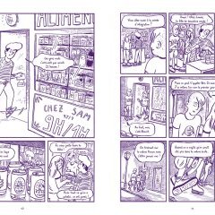 Graphiquement, la transition est là aussi évidente : ce roman graphique montre un style attachant, sans recherche d’esbrouffe, comme si l’étudiante avait abandonné la volonté de copier les maîtres pour faire surgir ce qui etait en elle, peut être même depuis son enfance tant les pages affichent une sensibilité graphique quasi juvénile. Cependant, il ne faut pas oublier le style des premiers romans graphiques américains, et ce style si moderne ressemble, dans son trait lisse qui paraît assuré et assumé, et qui sonne comme une déclaration artistique flamboyante.